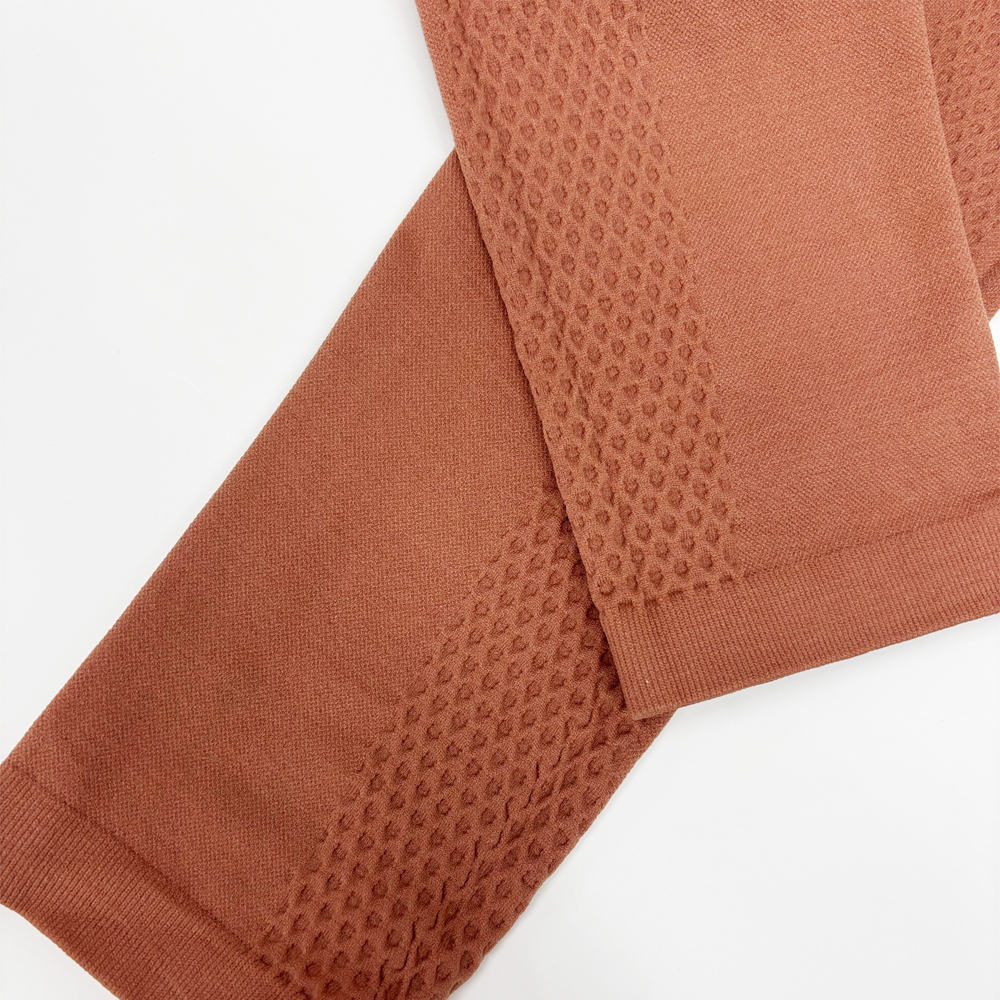 - 脚のラインに沿った凹凸感のある編地がポイントのレギンス。