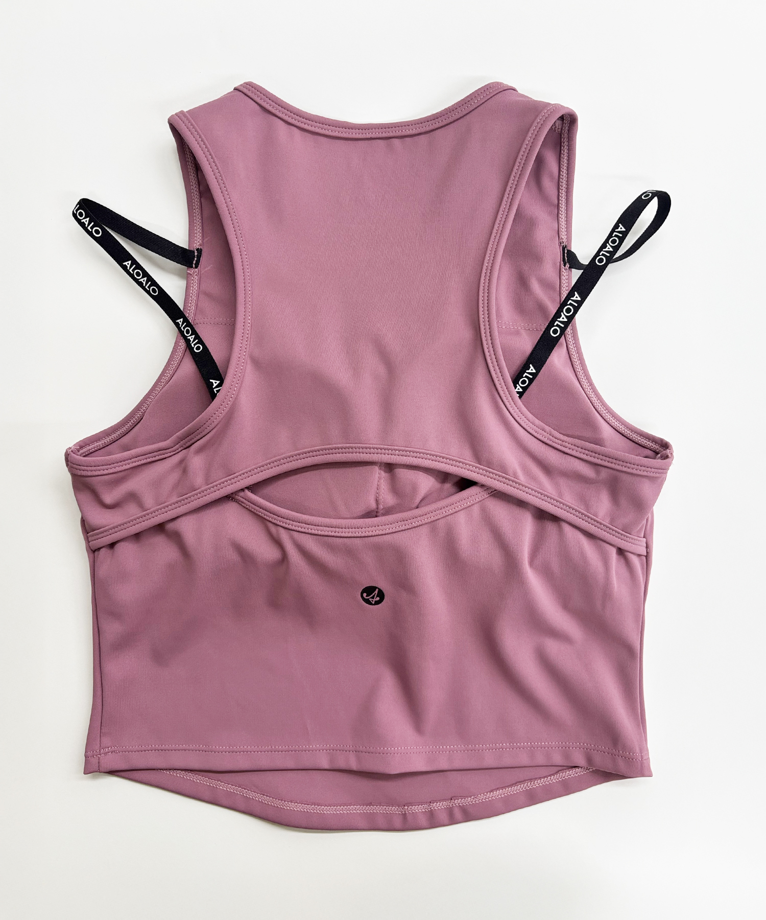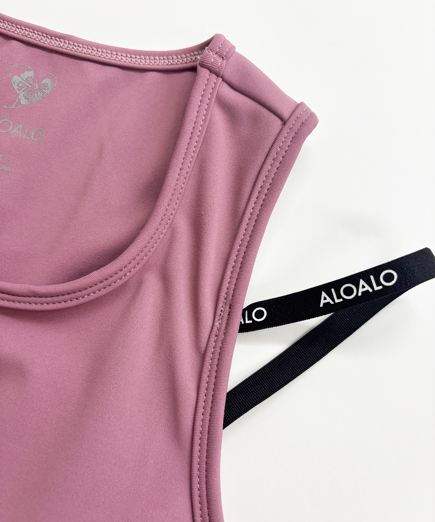 - ALOALOのロゴが入ったストラップがポイントのブラトップ。