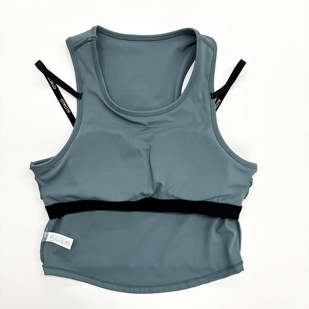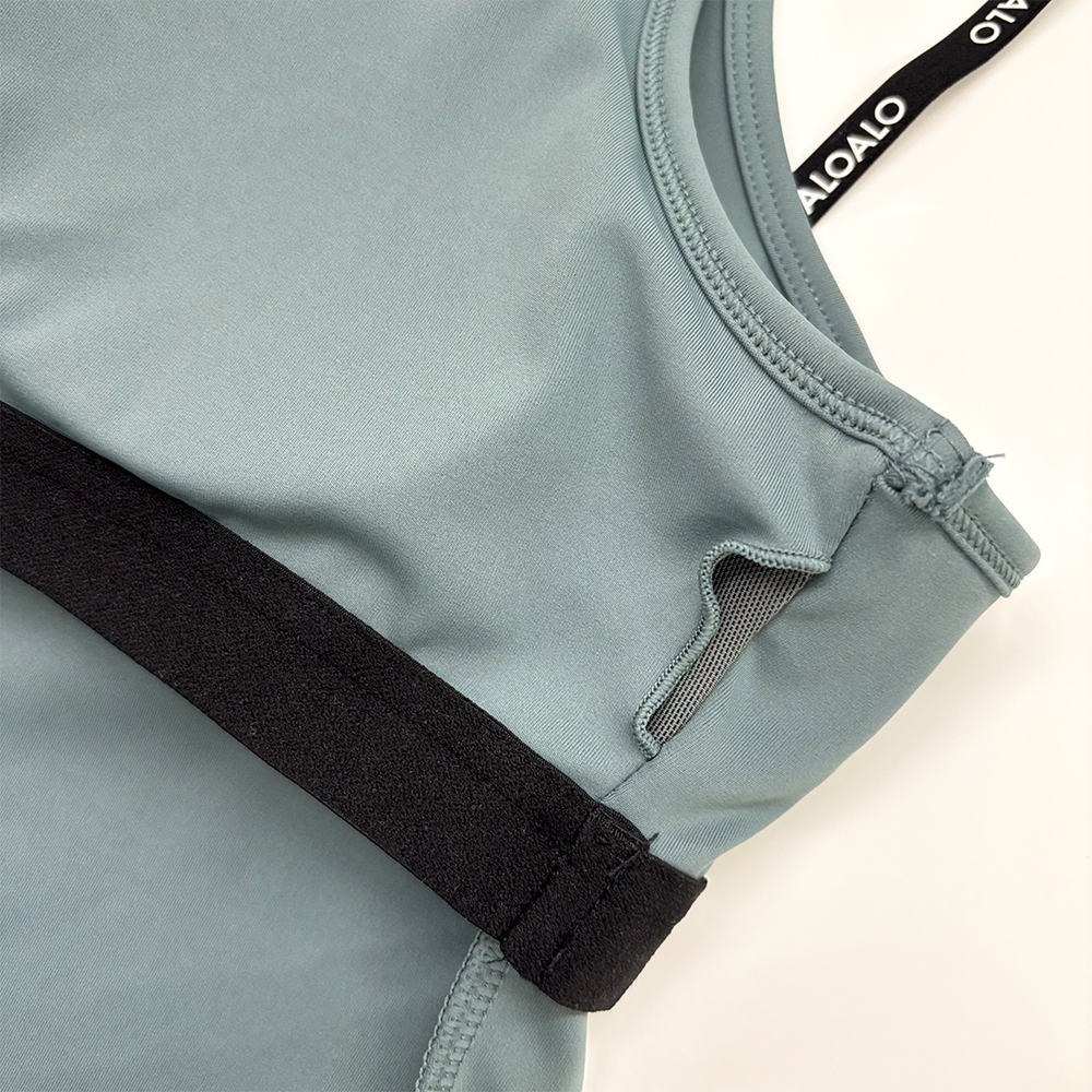 - ALOALOのロゴが入ったストラップがポイントのブラトップ。