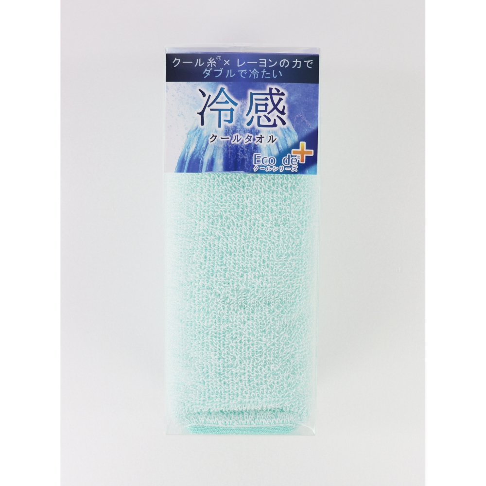 クール糸とレーヨン糸を使用した接触冷感マフラーです。表面に触れるだけで冷たく感じられ、エアコンや扇風機の補助としてもお使いいただけるのでエコにもつながります。普段使いのタオルとしてもご使用できます。