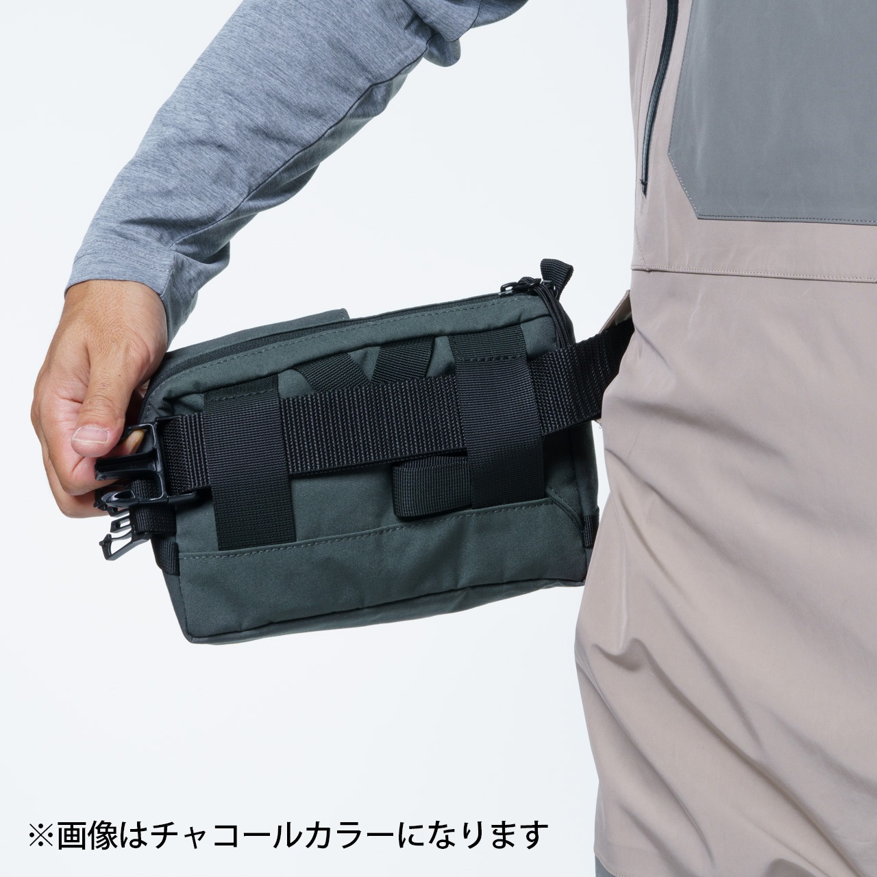 フィッシングベストの腰ポケット部を抜き出したようなデザインによりバックパックと併用しやすく、頻繁に使用するボックスや小物類を取り出しやすい場所に保持できます。