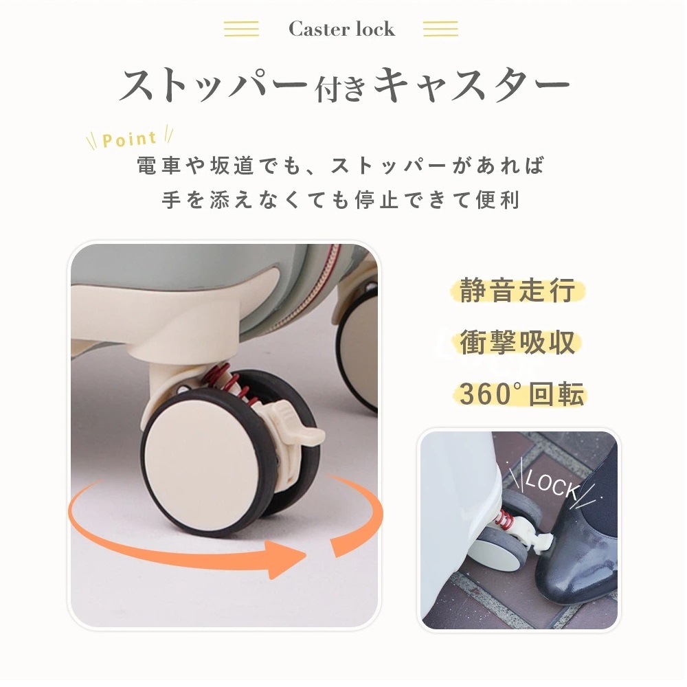 発色の良い艶のある加工を施したボディーにUSB付のTSAロックや、静音のストッパー付きダブルキャスターなどを備える。