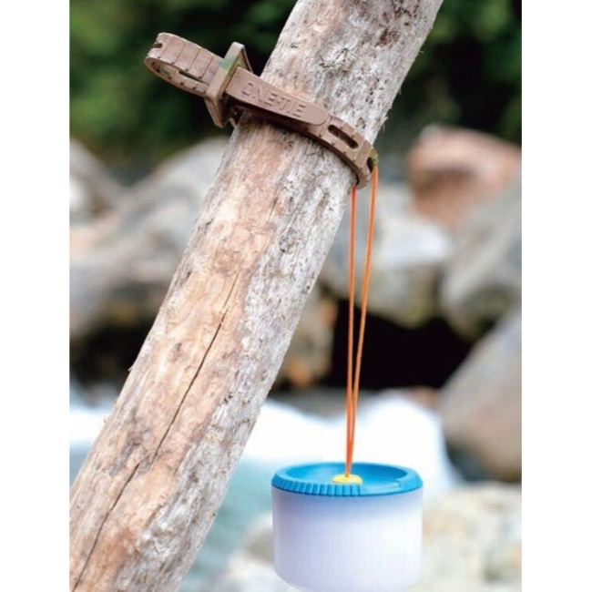 先端をバックルに二度通せば、強靭な輪っかを作ることができます。