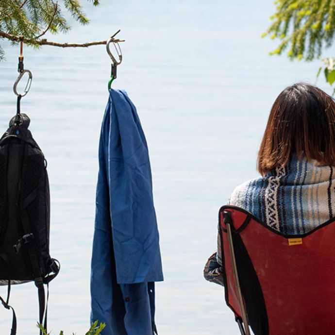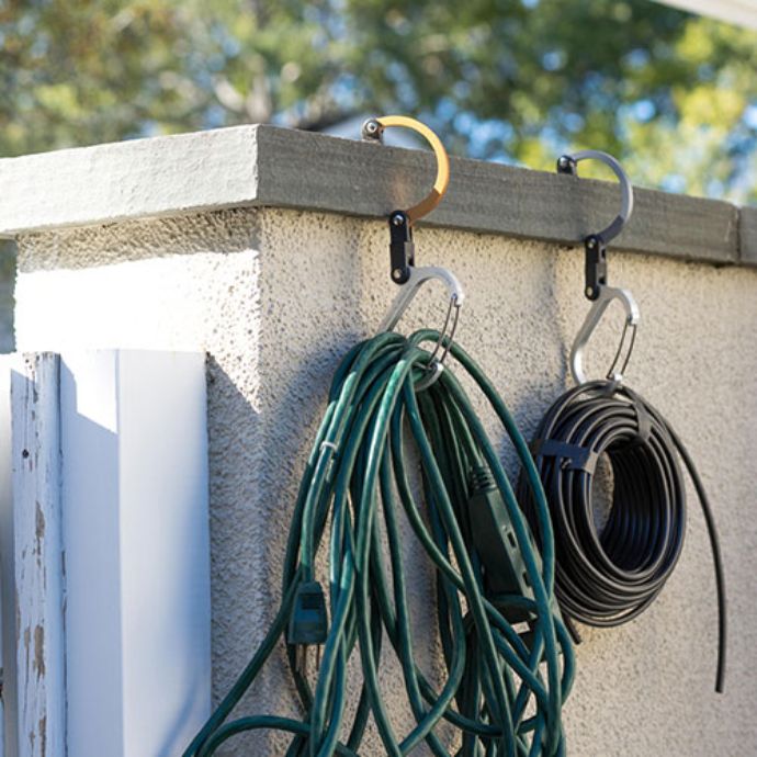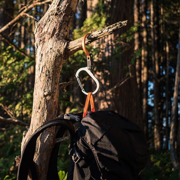 変幻自在のカラビナ型フックのHEROCLIP。カラビナとしての使用はもちろん、開けば360度回転するフックが現れS字フックや回転フック、バックハンガーに早変わりします。