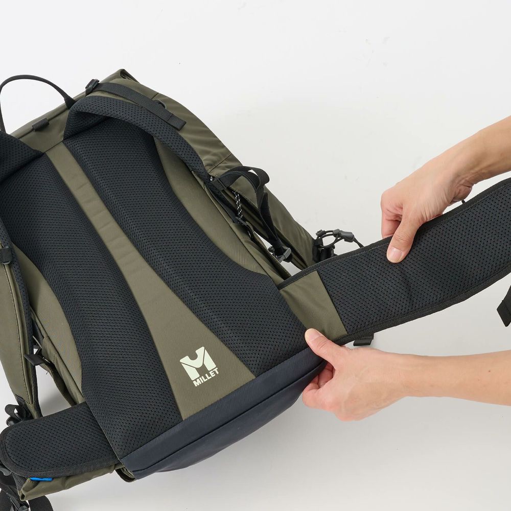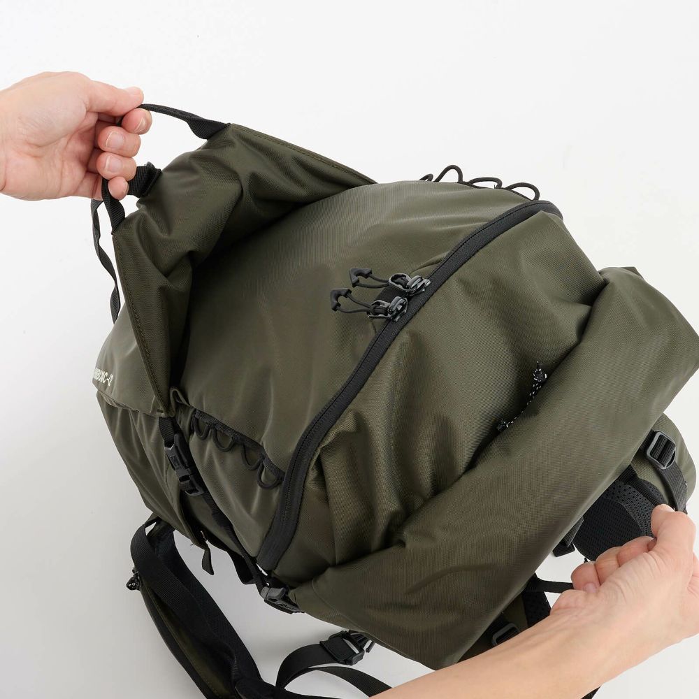 街歩きからアドベンチャーまでシームレスに楽しむアクティブな旅人のためにデザインされた多用途型リュックサック。長時間背負っても快適な背面システムはもちろん、スムーズなパッキングを可能にするロールトップ式で大きく開くメイン収納など、長旅を快適に過ごすための基本的な機能が備わっています。さらにこのメイン収納には直接アクセスできるフロントジッパーが設けられ、他にもフロント・サイド・ショルダー等の外側収納によって必要なアイテムを収納でき、素早い出し入れが可能です。すっきりとしたデザインは、シーンを選ばず快適な旅をサポートしてくれます。