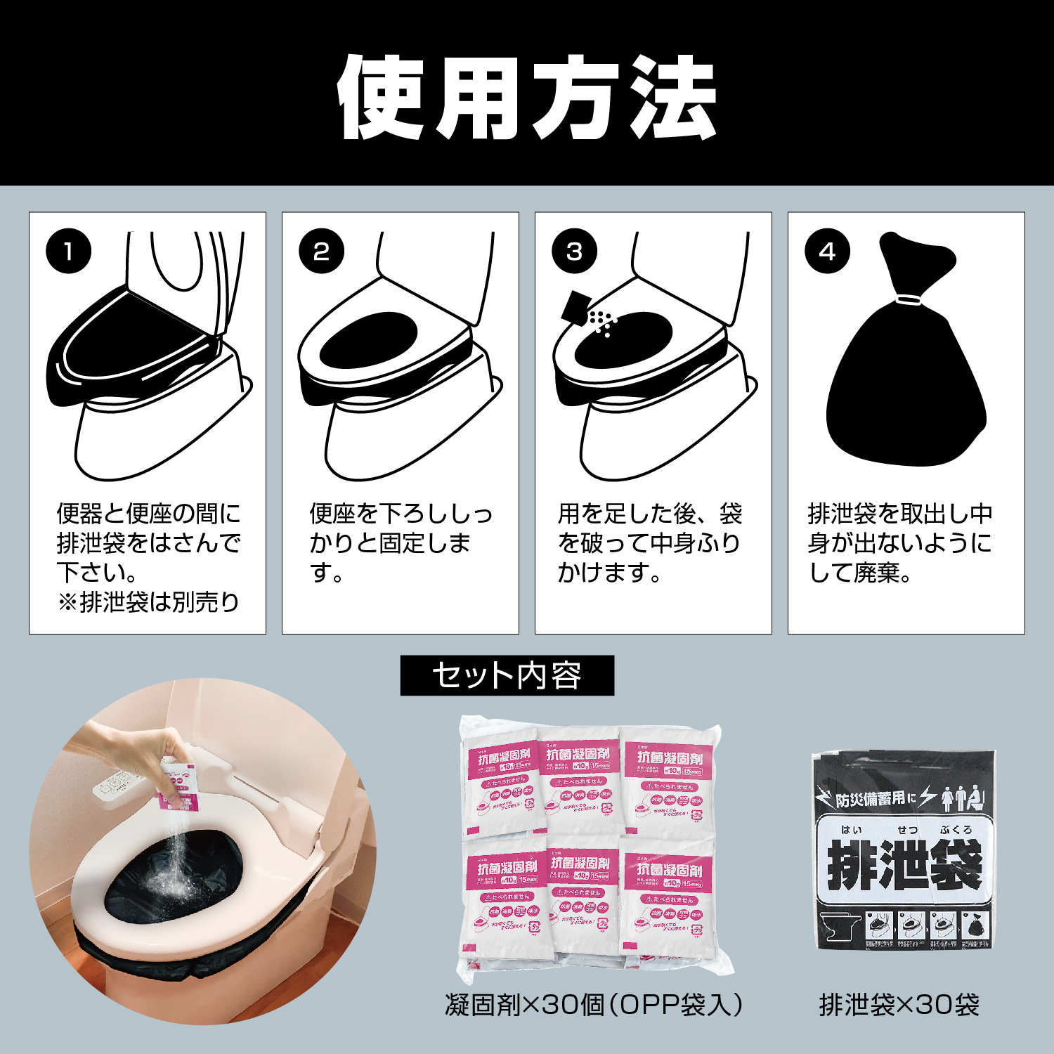抗菌Ag非常用トイレ 凝固剤 30回分(排泄袋付) / BR-905_one / エマージェンシー アウトドア 防災