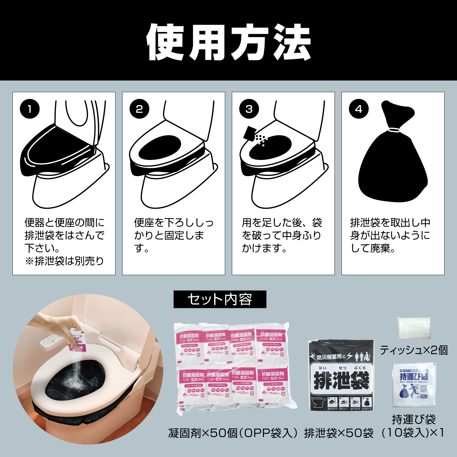 抗菌Ag非常用トイレ 凝固剤 50回分(排泄袋付) / BR-916_one / エマージェンシー アウトドア 防災