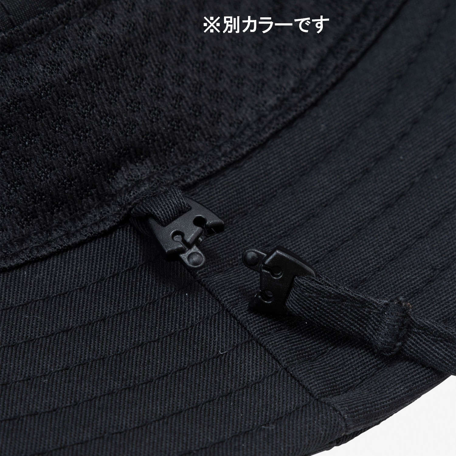 コットンライクな風合いで、リサイクルポリエステルを使用したやわらかなT/Cツイル素材を採用しています。スベリ部分の面ファスナーでサイズ調節が可能。あご紐は取り外しが可能です。