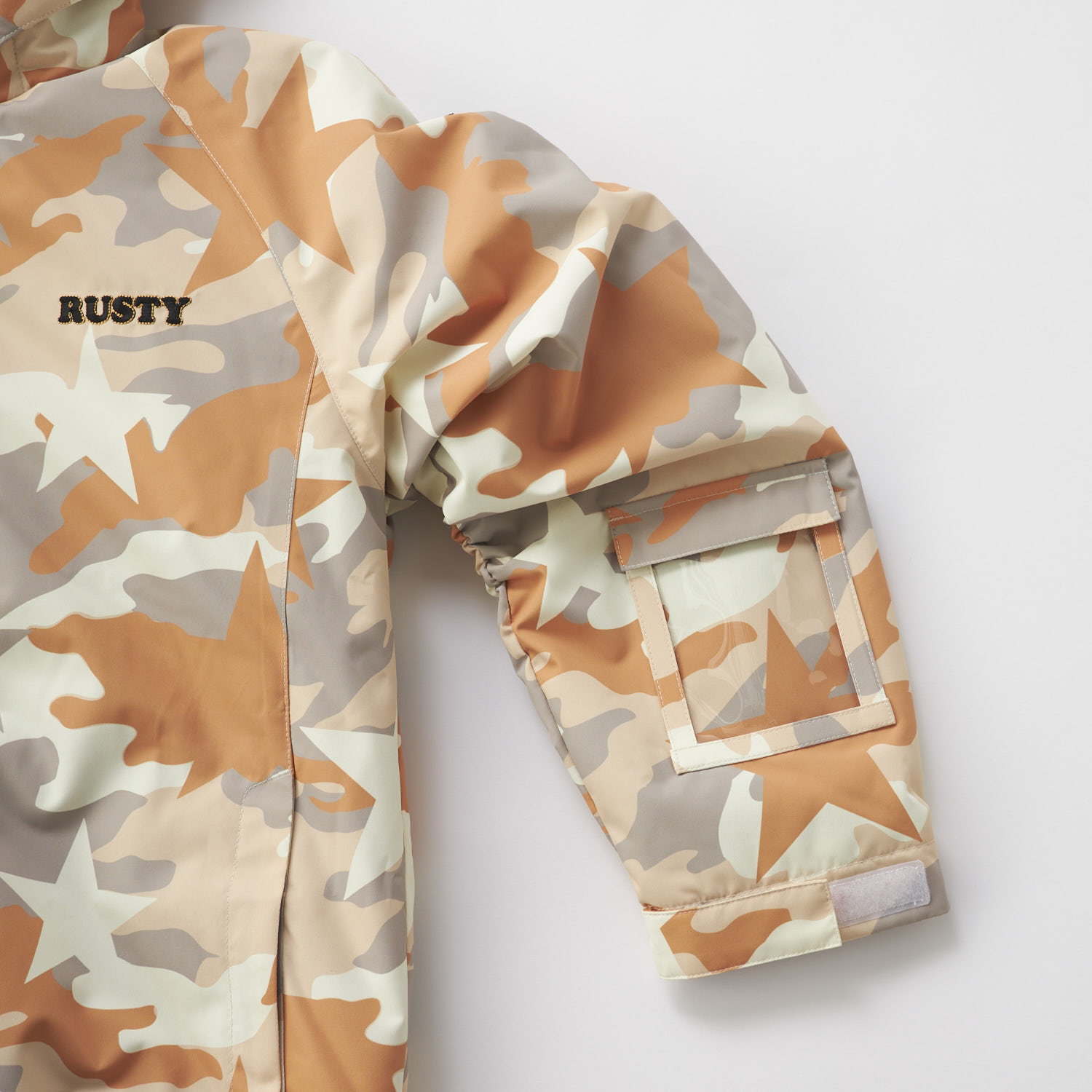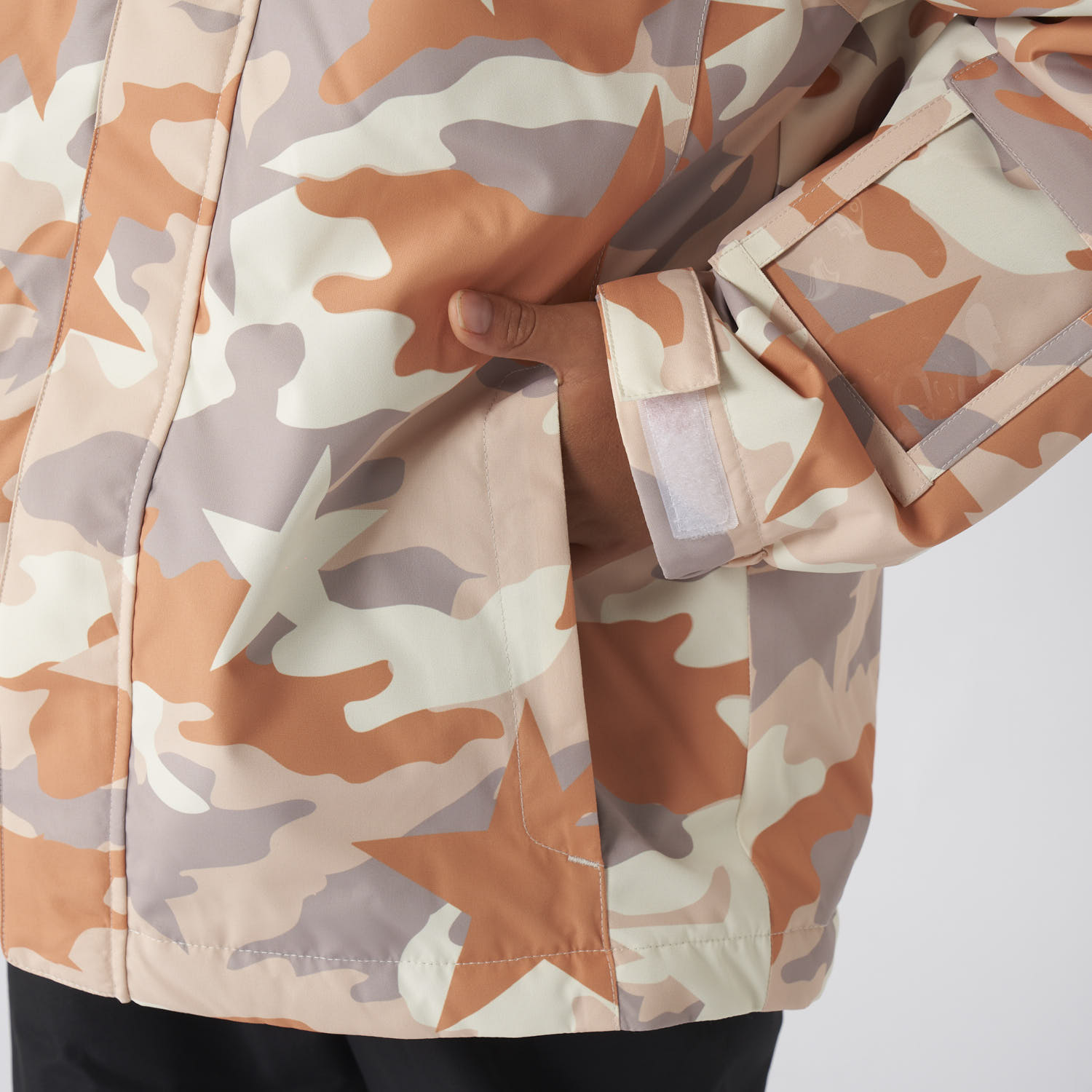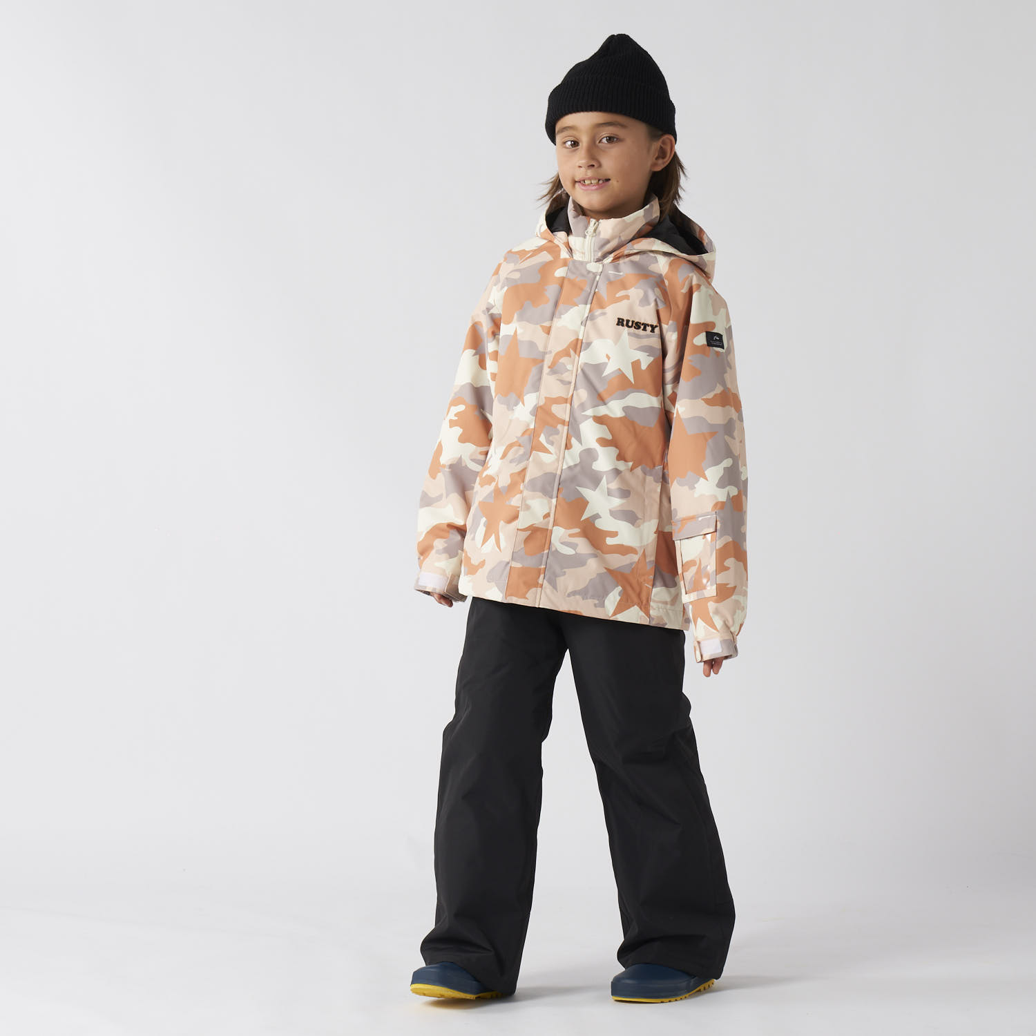 - 迷彩柄が格好いい!キッズスノーボード用の上下セットです。耐水圧10.000mm透湿5.000g アジャスター付きで1サイズの調整が出来き長く着れます。