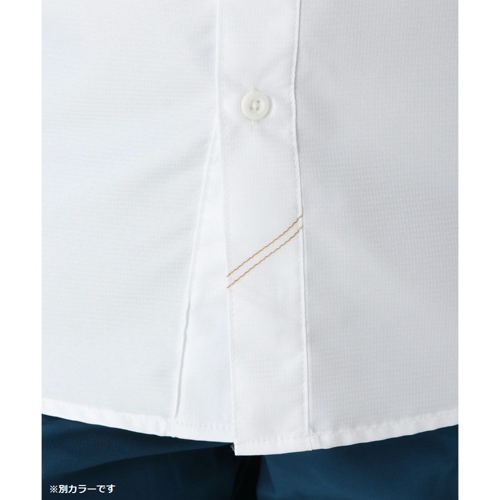 夏山登山にピッタリのベーシックな山シャツ。吸湿速乾性に優れた薄手のポリエステル100%素材でサラリと着られ、背面はメッシュを張ったベンチレーションになっているので発汗量が多い夏山登山にも最適です。