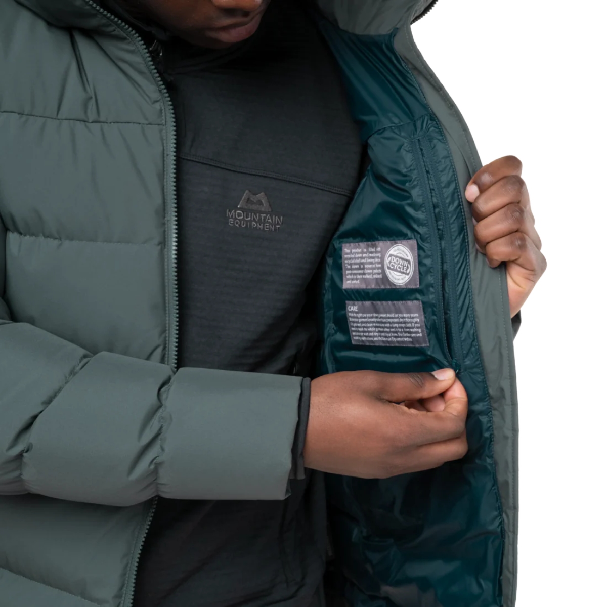 700フィルパワーのピュアダウンを使用し、ステッチで縫い付けられたバッフル構造で固定することで保温性を高め、特に肩、胸、フードなどのデリケートな部分でダウンの偏りによる冷えを防ぎます。