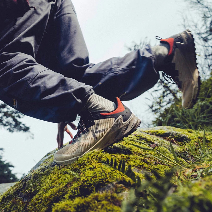 軽量且つグリップ性に優れたソールが運動量が多いトレイルフィールドでのクイックな動きに対応。ファストハイクやデイハイク、シティトレイルまで対応する、軽量で防水仕様の全天候型バーサタイルプロダクト。