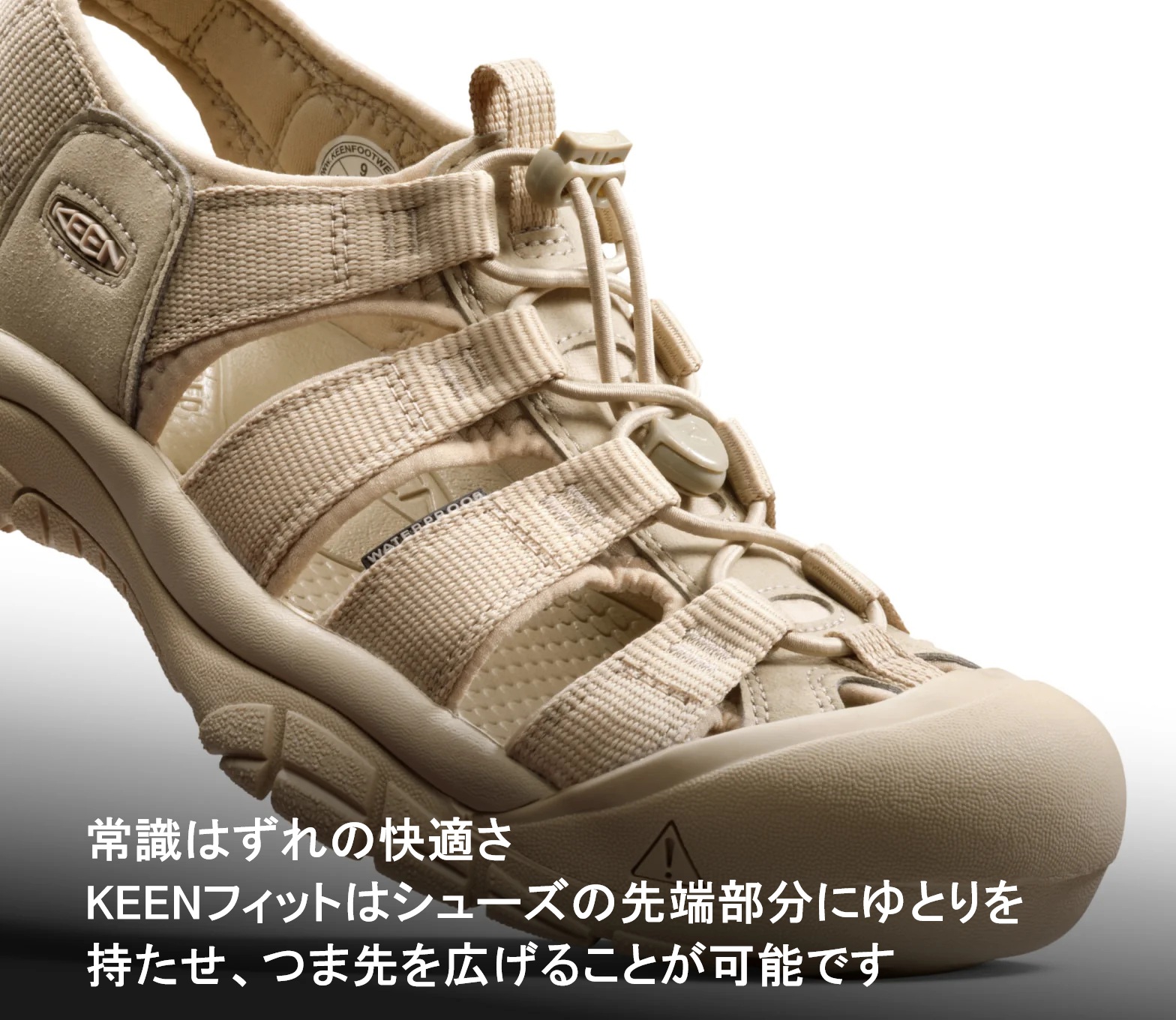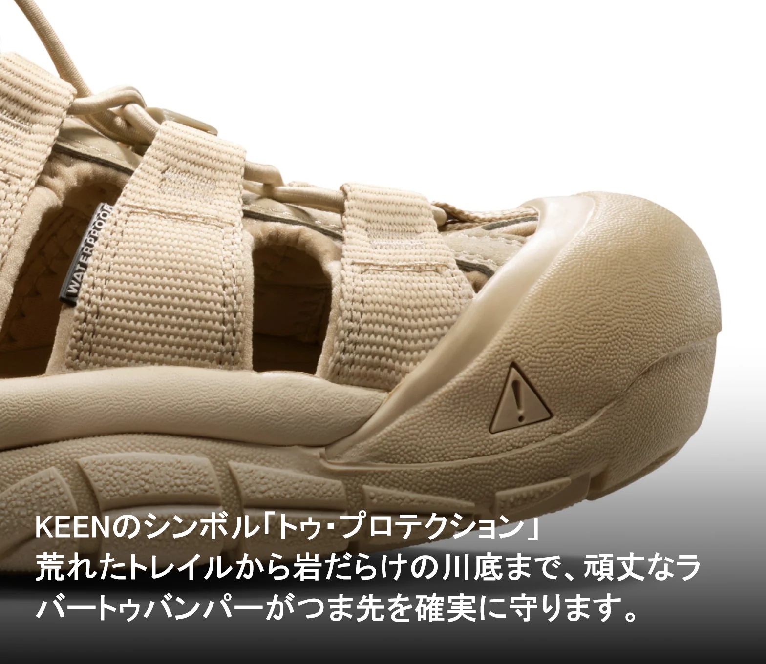 KEEN創業モデルNEWPORTのH2O(水辺対応)バージョン、水陸両用で軽量、都市部や旅行での使用にも最適。