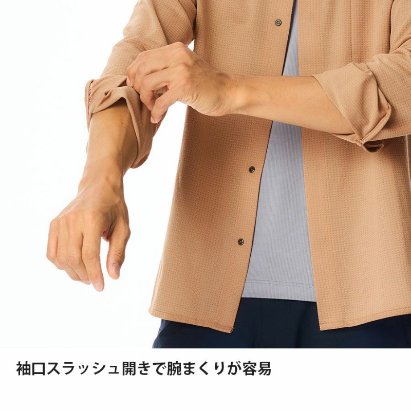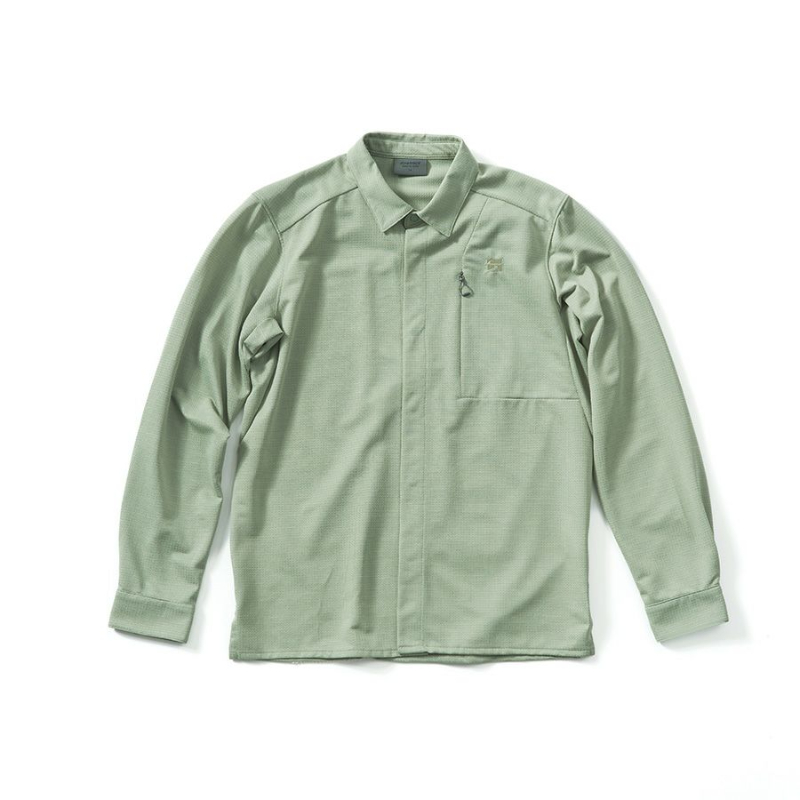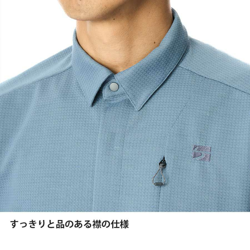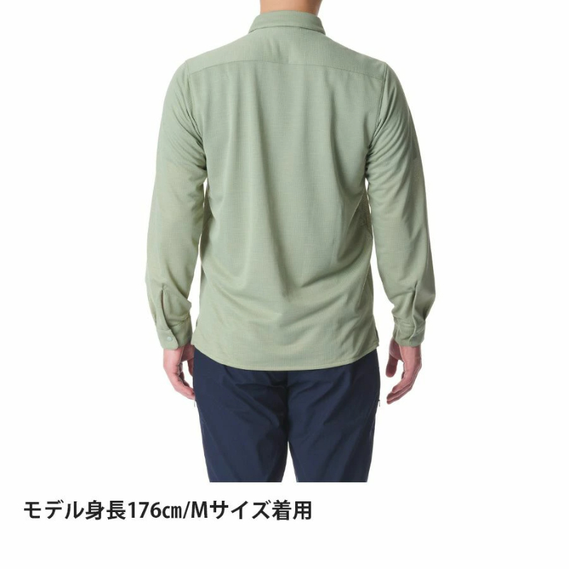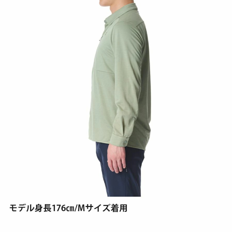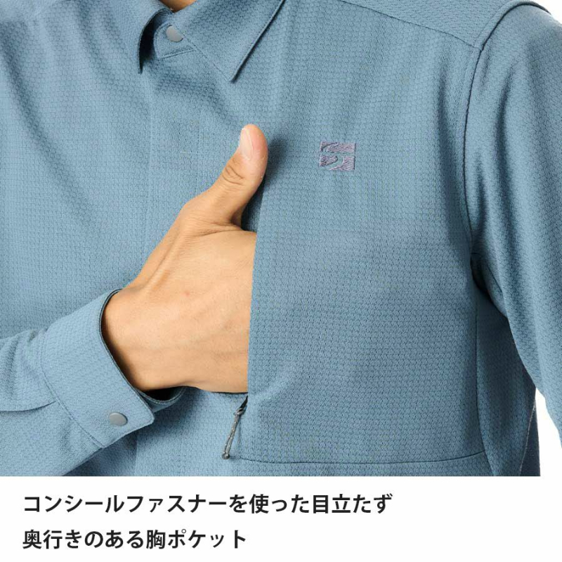また、腕まくりしやすい袖口、片手で操作しやすい軽量スナップボタン、ファスナー付で収納力に優れたポケットなどアウトドアでの使いやすさと軽さも追求しています。高機能に加えてシャツとしての仕立ての美しさも追求したシンプルデザイン。ベースレイヤー(Tシャツ)の上から羽織ったり、ドライレイヤー(R)の上に直接レイヤリングしたり、シーンや気候に合わせて活用いただけます。