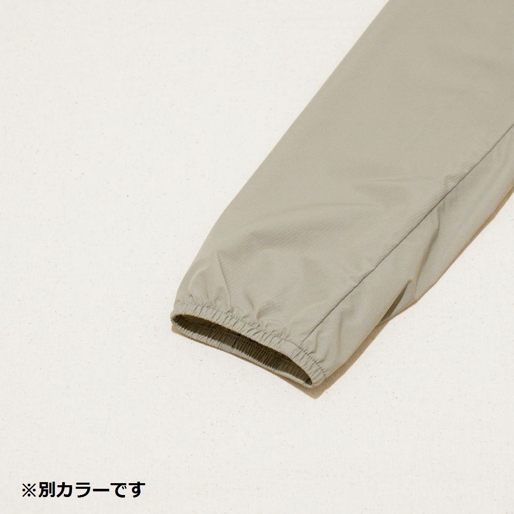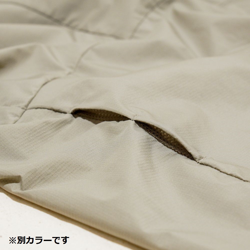 フード裏のポケットに本体を収納できるパッカブル仕様。静電気の発生を抑える静電ケア設計を採用。保温用のミドルレイヤーとのレイヤリングがしやすいように、袖下を中心にややゆとりを持たせたデザインで、トレイルラン、登山、キャンプなど、シーンを選ばず活用できる1着です。