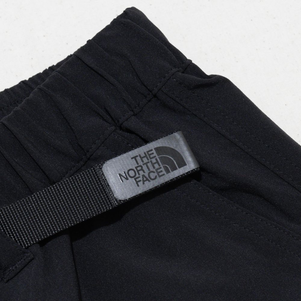 強度のあるナイロンと、ストレッチ性を持つポリウレタンを混紡した4WAYストレッチ素材を採用。汗をかいても肌離れがよい、ドライ感のある生地も特徴です。フッ素化合物を含まないはっ水剤を使用し、多少の雨や汚れに対応。ウエストは操作性に優れたバックル仕様です。UVプロテクト(UPF50+、紫外線カット率95%以上)機能付き。