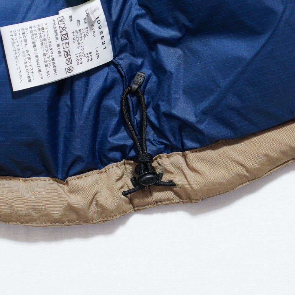 表地は、異形中空糸を使用した軽さが特徴のナイロン素材。コットンライクな自然な風合いで、はっ水性も備わっています。中わたには一部リサイクルダウンを採用し、ダウン特有のバッフル感と軽さを体感できます。裏地は、薄くすべりのよい12デニールのナイロンリップストップ。フードは取り外し可能です。