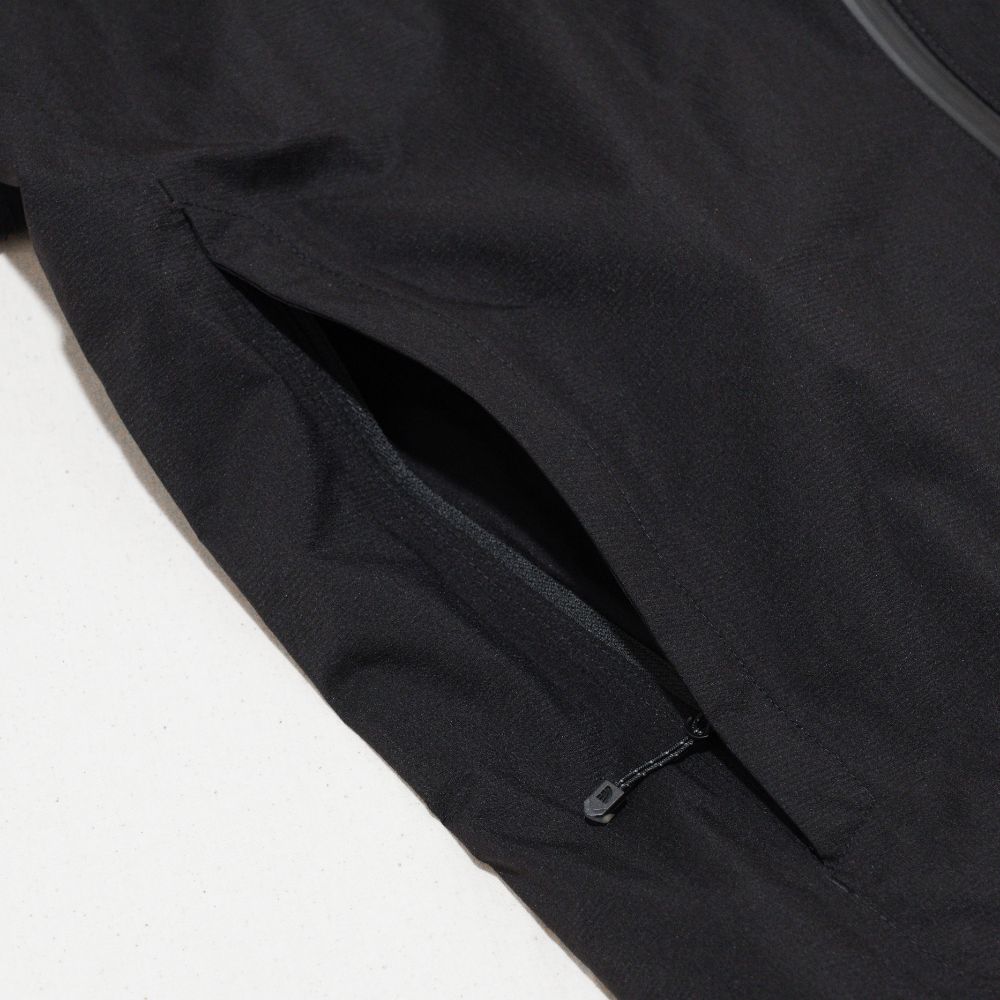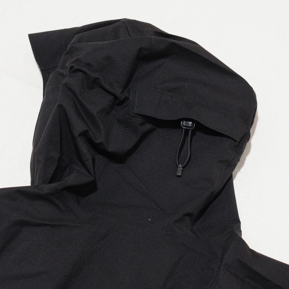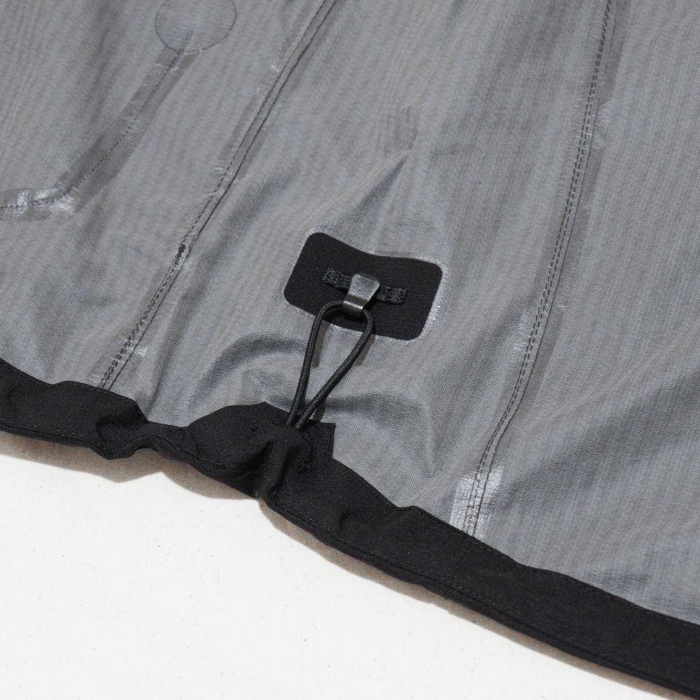 パックに常備できる防水シェルとしてだけでなく、ウインドシェルとして幅広く活用できる2.5層の軽量レインジャケットです。ワンハンドアジャスター対応のフードをアップデート。フィット感を高めつつ、視界をさえぎりにくい形状に仕上げています。素材には環境負荷の少ない植物由来のナイロンを使用。ビーズ加工を施した透明ラミネートフィルム・Clear-Dは肌触りがよく、汗をかいてもべとつきにくいのが特長です。フロントは止水ファスナーを使用し、防水性に加え軽量性も重視。携行に便利なスタッフサック付き。アウトドアからデイリーユースまで、さまざまなシーンに対応する、日常でもコーディネートしやすいアイテムです。