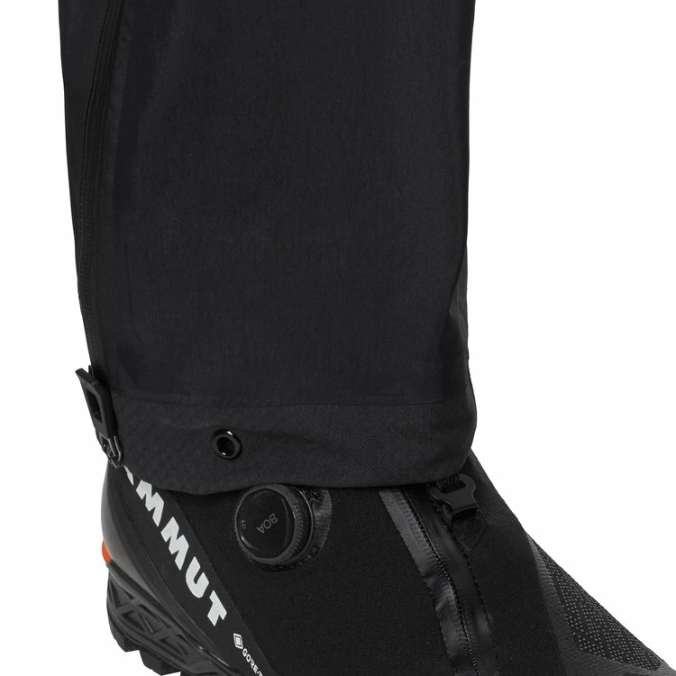 ・登山ブーツにシームレスにフィットするよう、形状成形された裾の前側を短めに設定