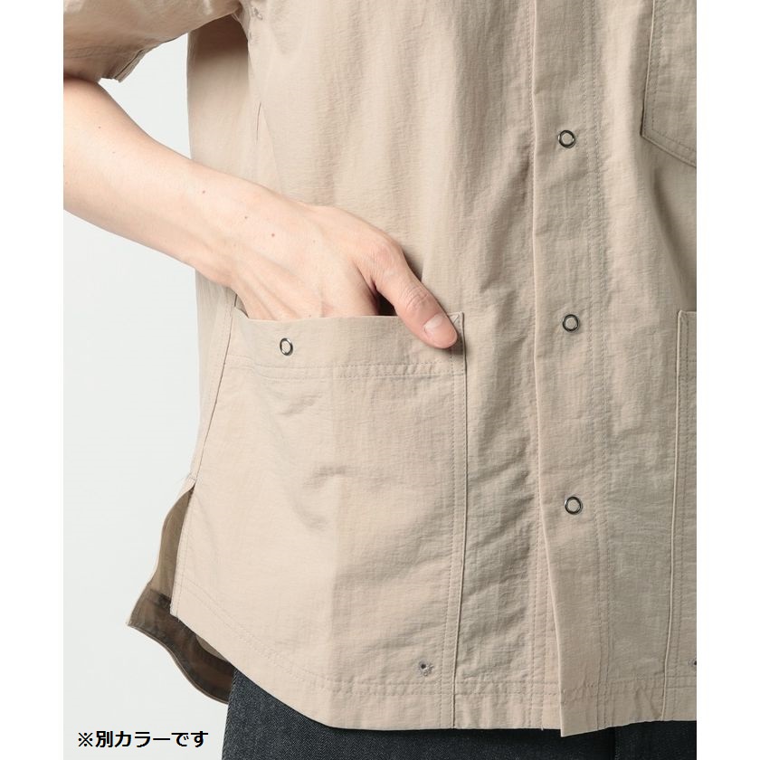 コットンのような肌触りのナイロン素材を使用したオープンカラーの半袖シャツです。