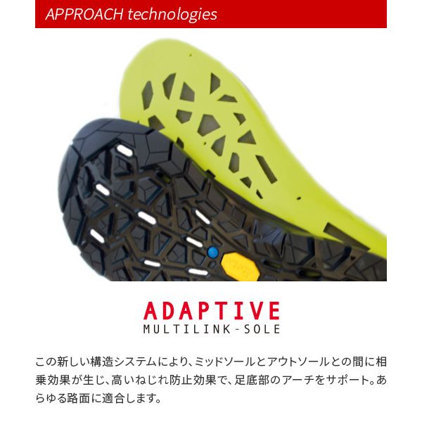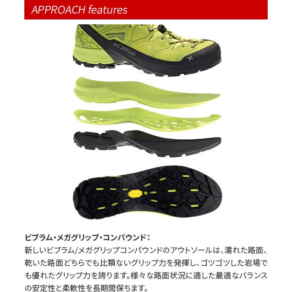 ソールにクライミングゾーンを備えたVibramMegagripを採用し、エッジッング性も高いデザイン。