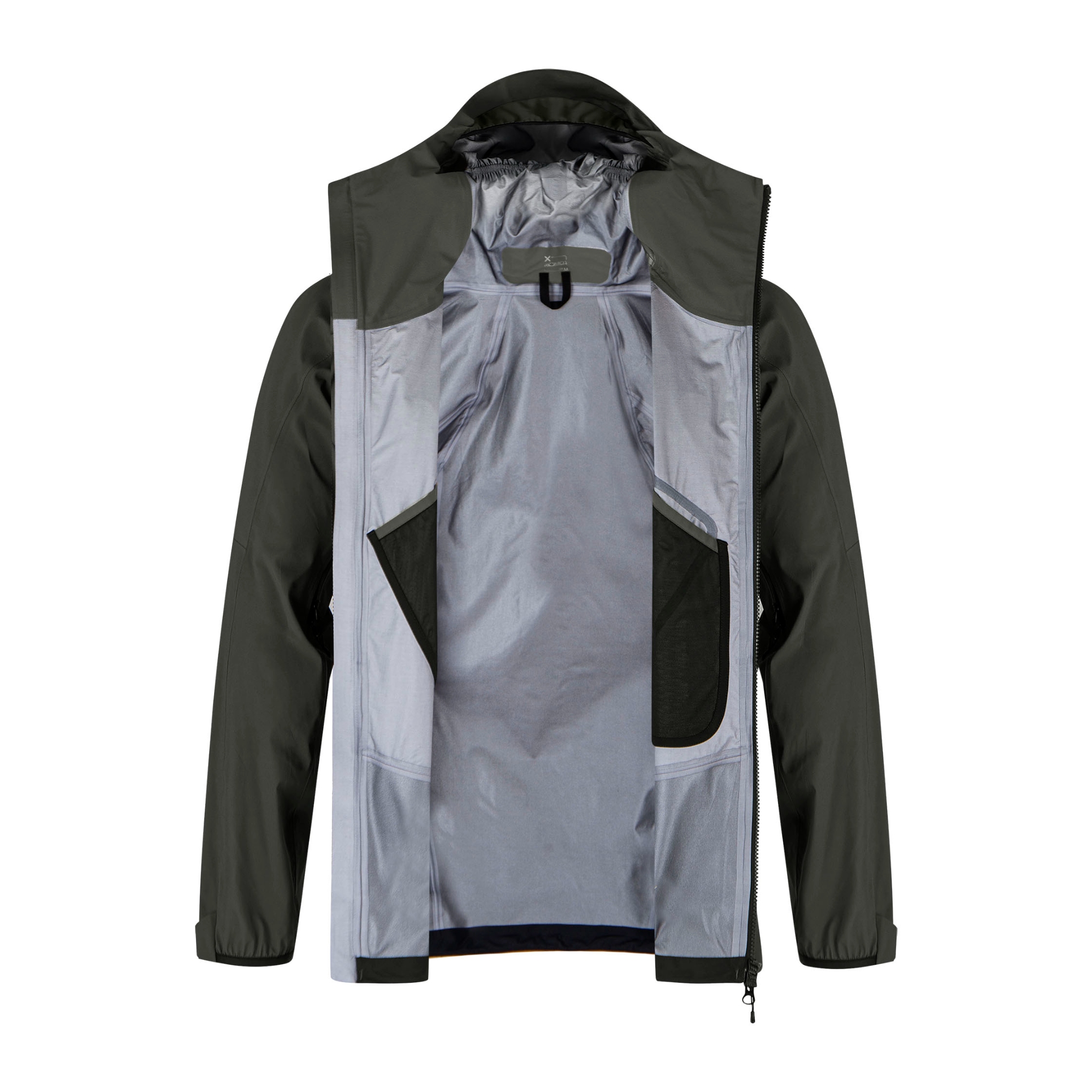 軽量で薄いGORE-TEX(R)ePE 3レイヤーメンブレン(28K/<20RET)使用の防水シェルジャケット。