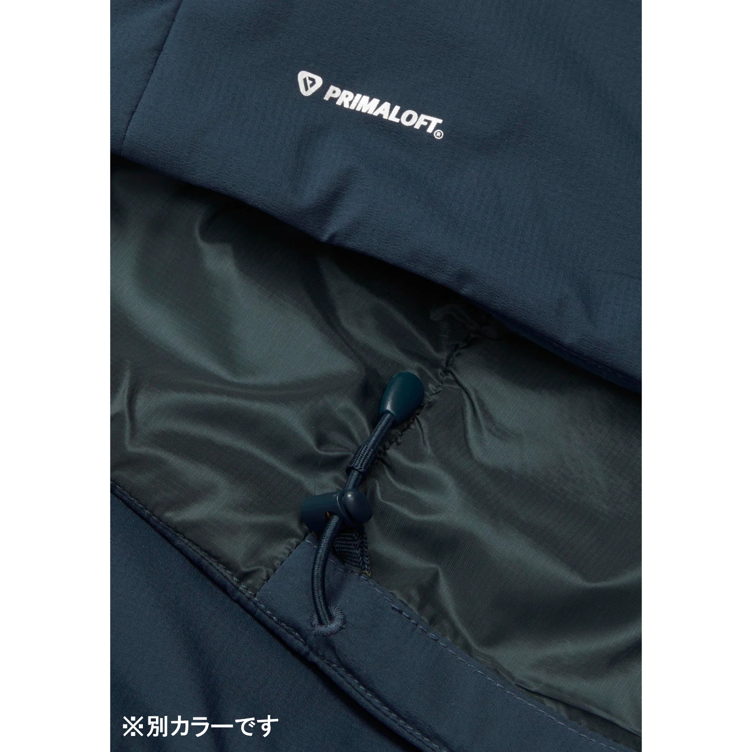 前面、背面、袖上部、襟部に60gsm PrimaLoft(R) Gold Active+断熱材(再生素材55%含有)を採用
