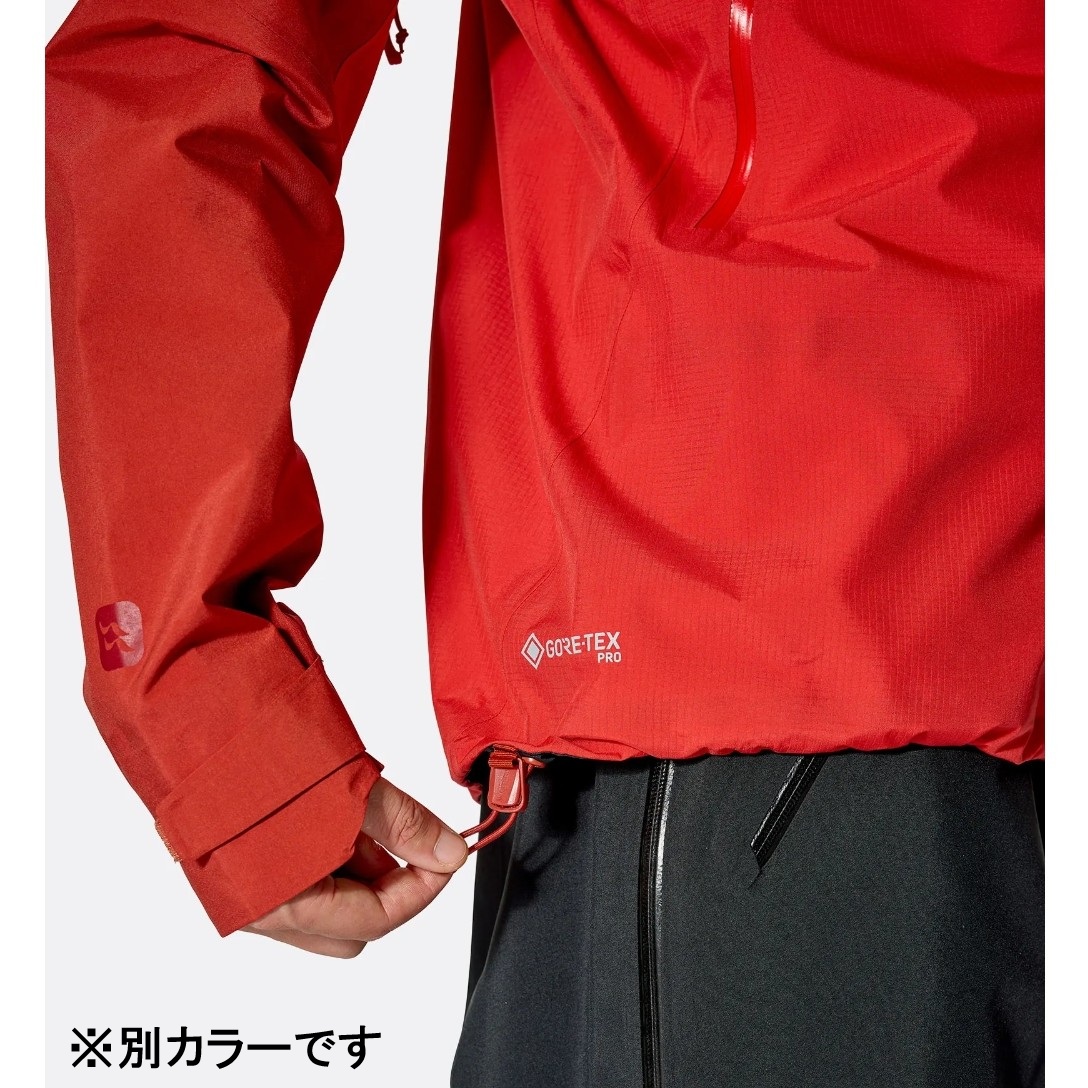 革新的なフッ素系化合物不使用ePEメンブレンを採用した3層GORE-TEX PROプロダクトテクノロジーで構築され、バックパックストラップの繰り返し摩擦による摩耗に耐えるよう、肩と袖にはより頑丈な生地を使用。