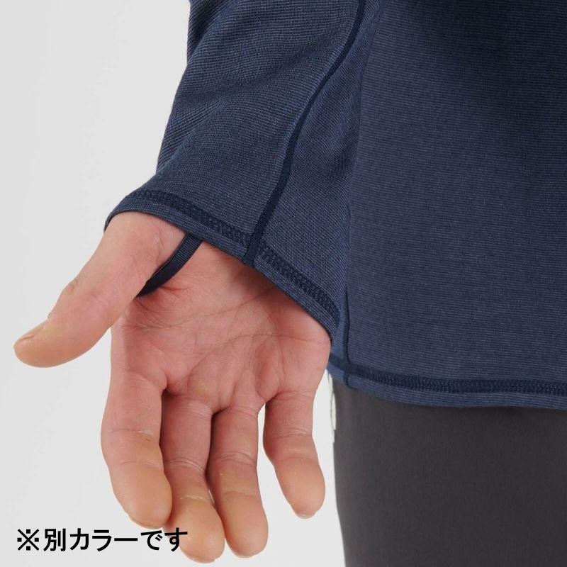 カジュアルにも合わせやすいクルーネック、袖口にはより保温性の高めるサムループが付いています。