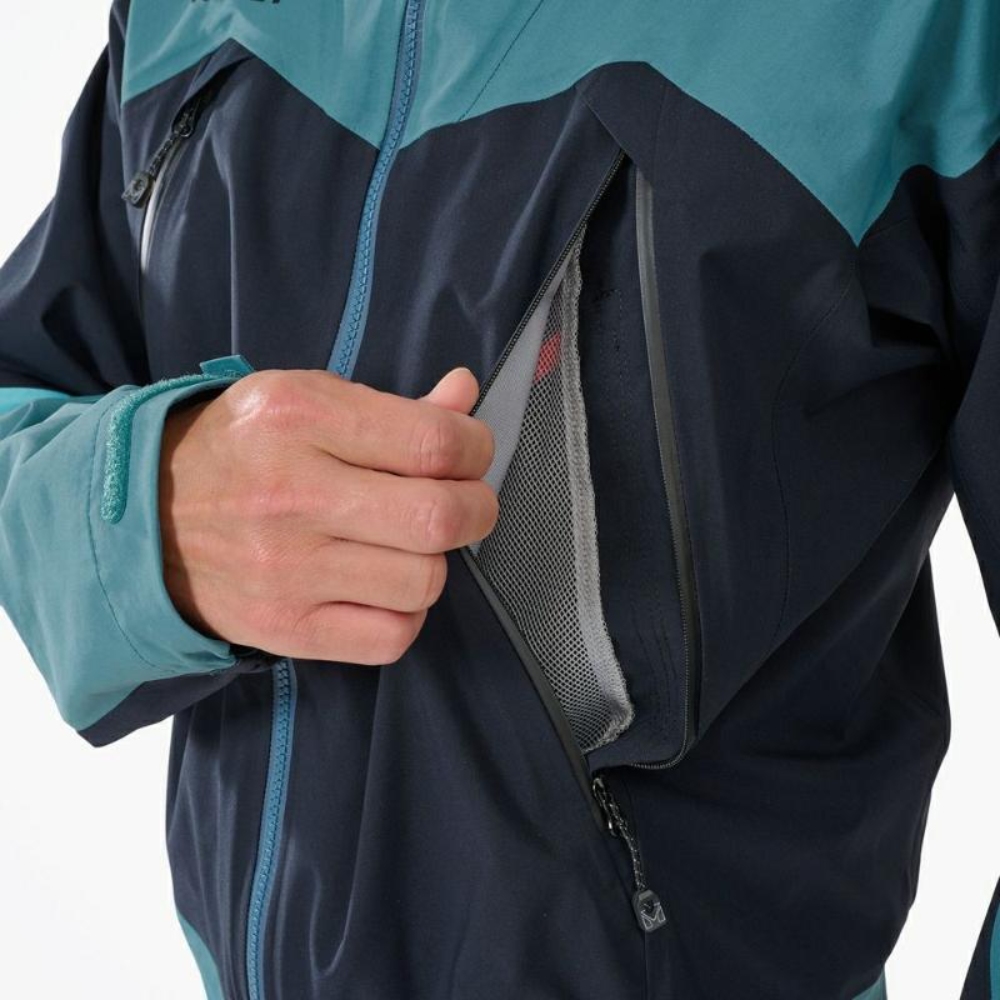 カラー:N9888(BLACK/HYDRO)過酷なアウトドアアクティビティでの着用を想定したトリロジーシリーズのオールウェザーシェルジャケット。高い防水透湿性と快適な着心地、さらに耐久性をも兼ね備え、1年を通して活躍します。30,000mmの高い耐水圧と優れた透湿性(40,000g/m2/24h)を両立した「ティフォンタフII」素材を採用。フード・肩・腕・腰回りには耐摩耗性と耐久性の高い素材を使用し、過酷な状況下でも常に安全・ドライを保ちます。サラッとした肌触りと耐久性を兼ね備えたトリコット裏地と、適度なストレッチを備えた表地は自然でストレスの少ない着心地を提供。ヘルメット対応で調節可能なフードや、ベンチレーションを兼ねたジップメッシュポケットとインナーメッシュポケット、さらにフード内部に収納可能なパッカブル仕様など、ハードな登山から道なき道を分け入るアドベンチャーまで、極限に臨む探検家たちにとって理想的な機能が詰まっています。