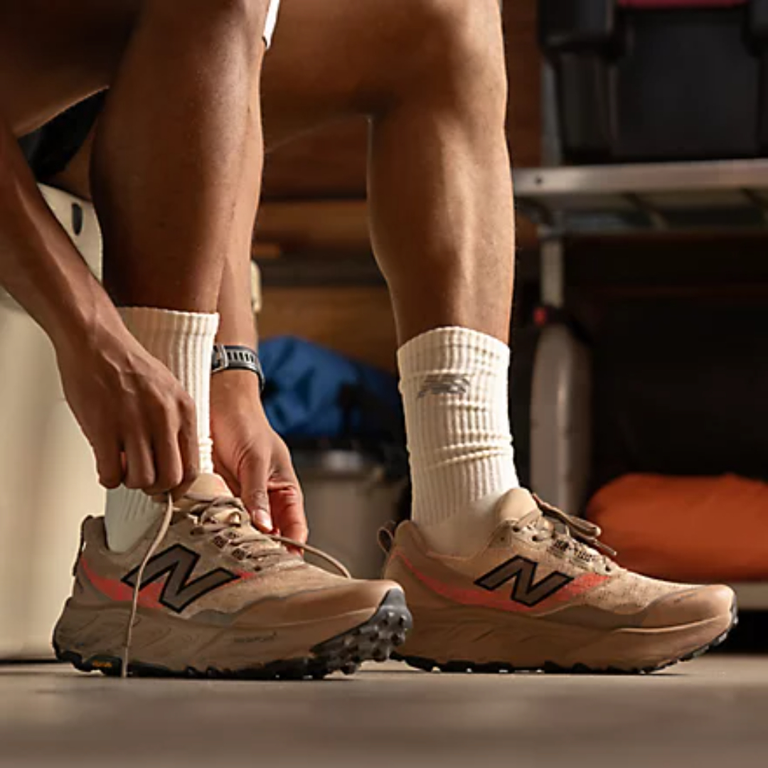 長距離トレイル用のトップモデル「Fresh Foam HIERRO v9」に、ネイチャーカラーの新色モデルが登場。30mm相当の厚底ソールには2層構造設計を採用し、クッション性と安定性を両立。アッパーの通気性と耐久性に優れたメッシュと、爪先の3層構造のTOE PROTECTが足元を守りつつ、アウトソールのVIBRAM MEGAGRIPが、不整地でもしっかりとしたグリップ力を提供します。
