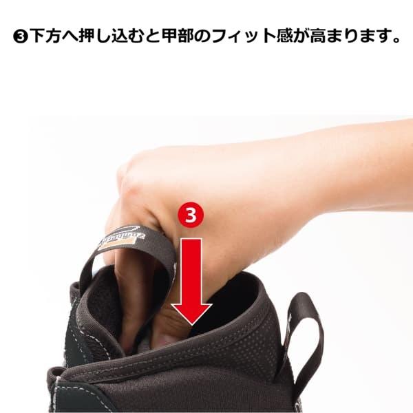 ダブルタン構造によりひとりひとりの足に合わせてフィッティングが可能です。