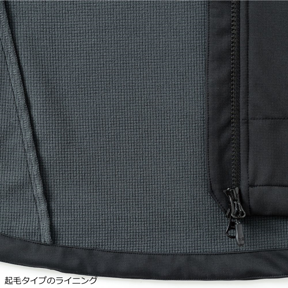 肌面はグリッド構造のフリースとなっており、保温性と肌離れを両立。