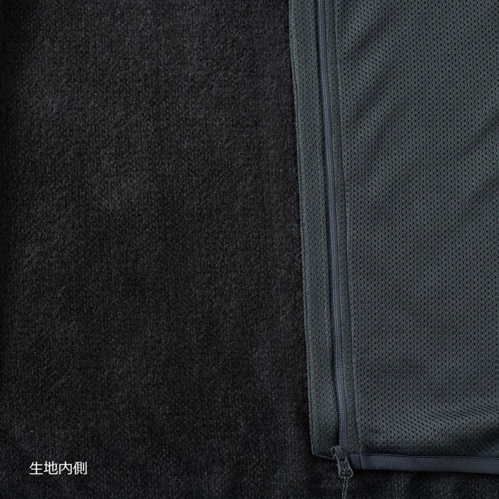 中空8フィン断面の多機能繊維Octa®CPCP®を使用し、中綿と裏地を一体化した快適機能トリコット素材。