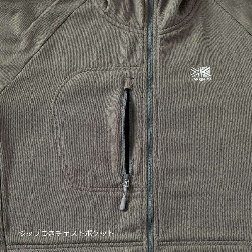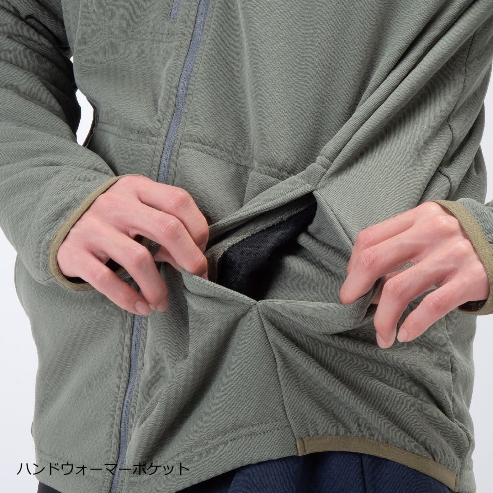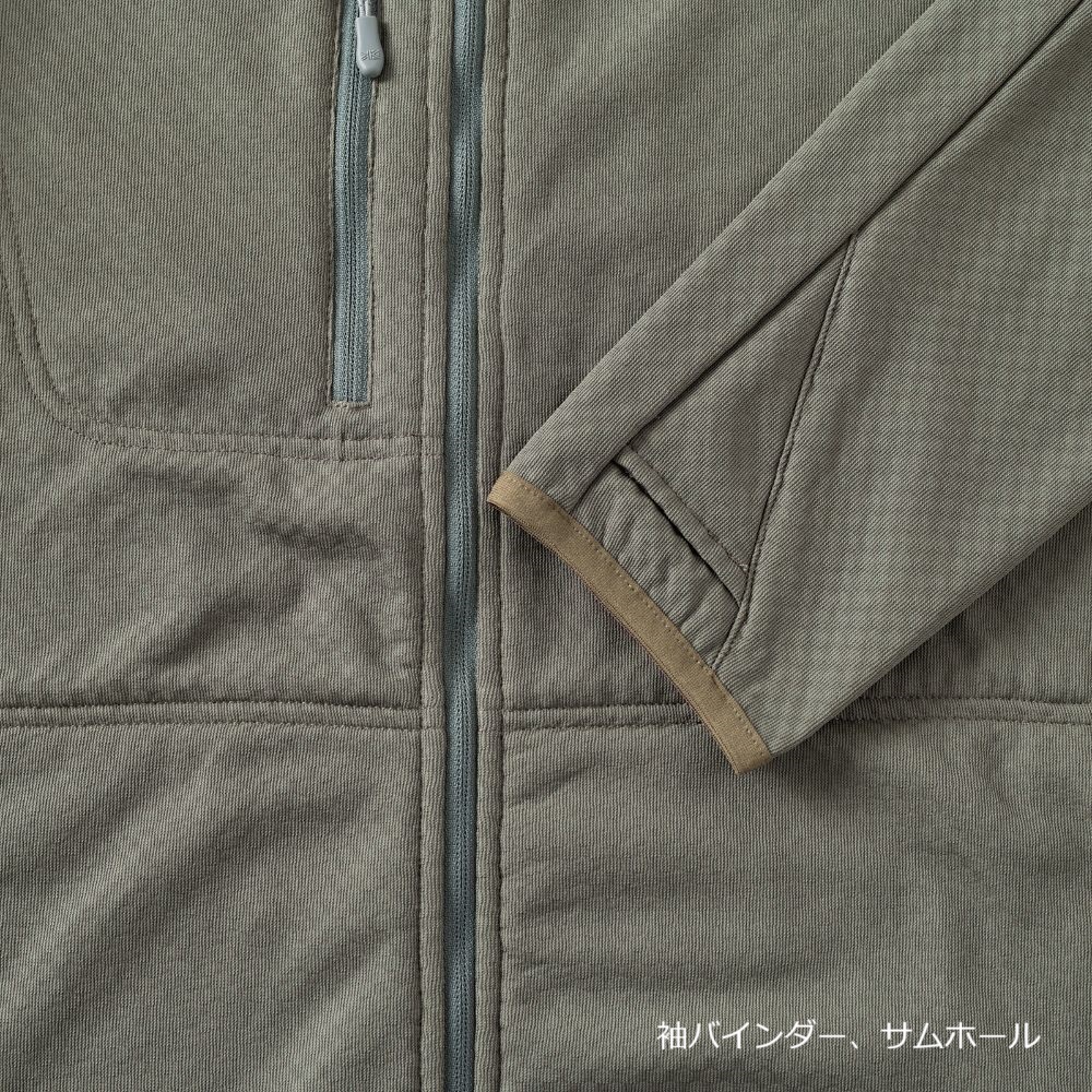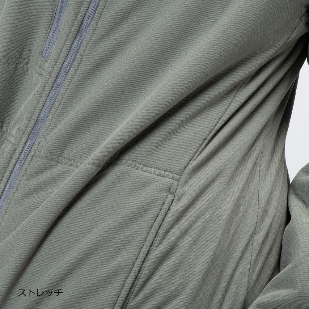 生地構造によりデッドエアーを溜めやすく高い保温性と速乾性に優れた機能素材。