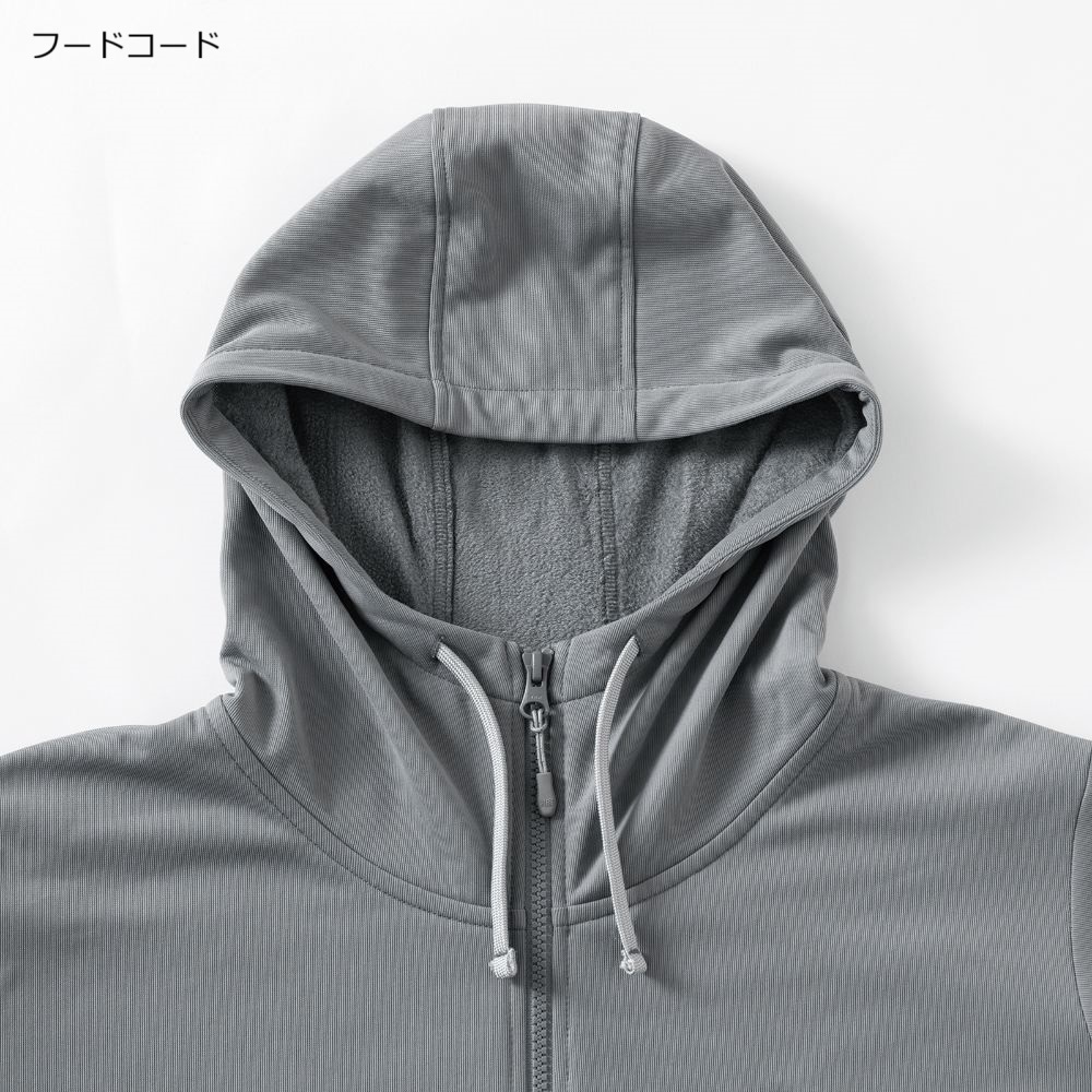 スタンダードなスウェットフーディー型だが、吸水速乾性もあるためハイキングなどの行動着としても快適な機能を発揮してくれるアイテム。