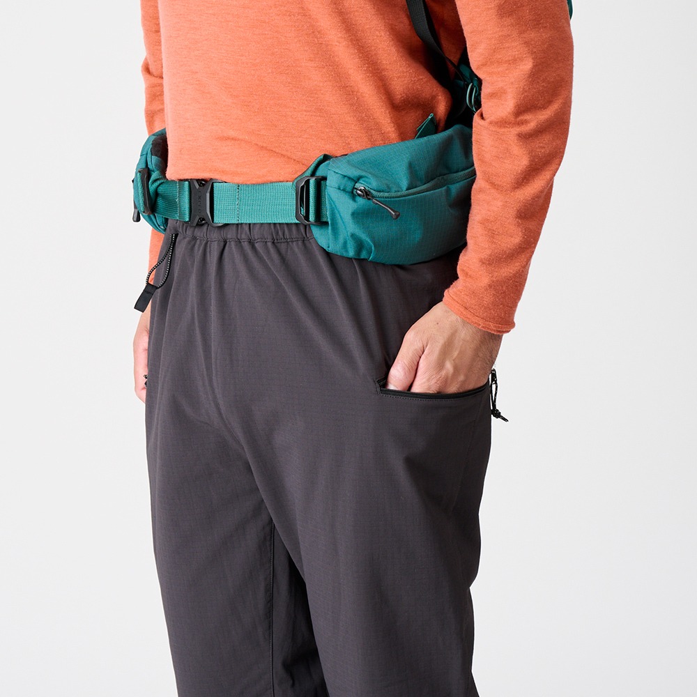 また、シンプルなサイドポケットはバックパックのヒップベルトに干渉しないのでアクセスにストレスを感じません。
