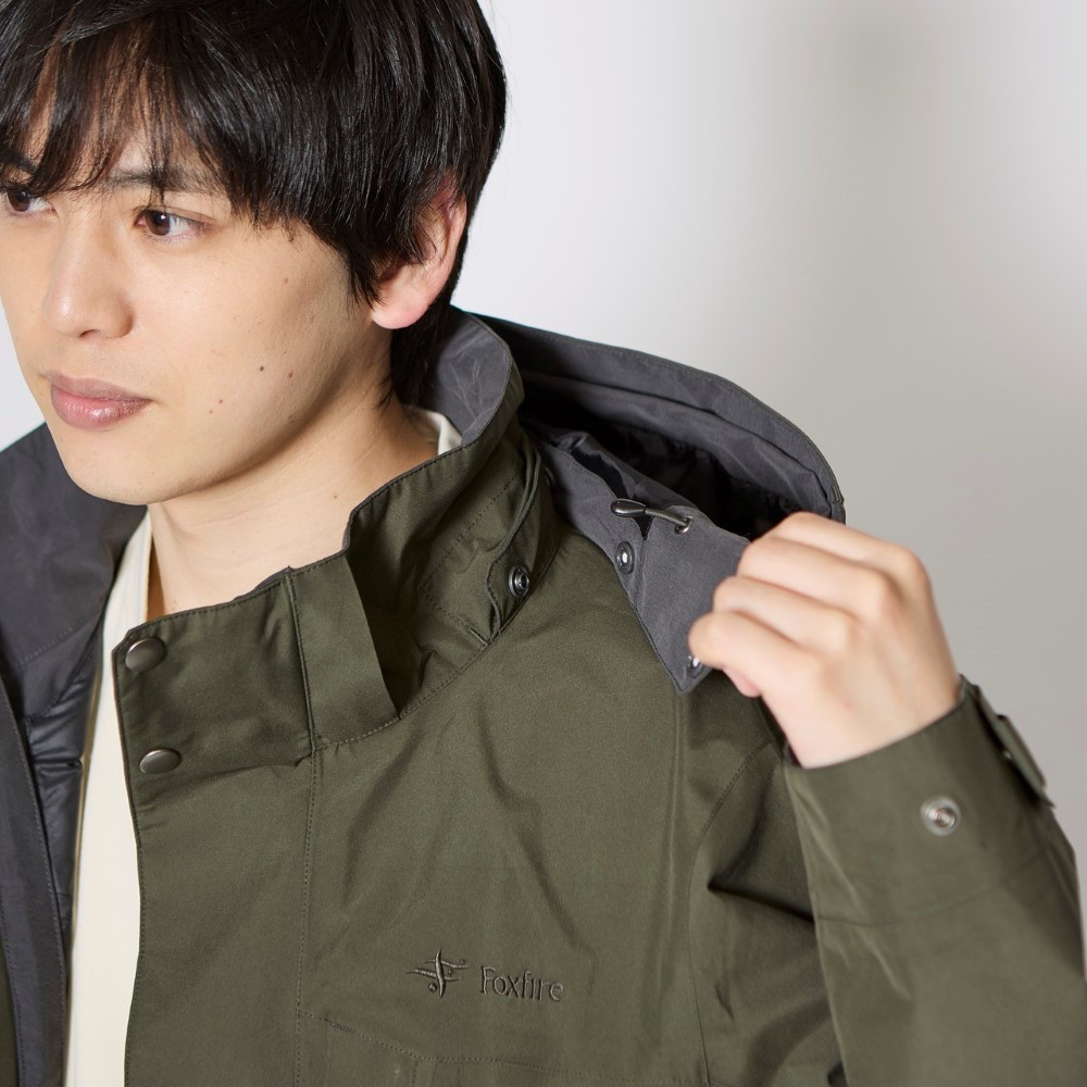 - 透湿防水性に優れた全天候型ゴアテックスジャケット。クラシカルなフィールドジャケットをベースに適度なアーバンアレンジを加えたデザインです。フードは取り外し式で、アウトドアからタウンユースまでさまざまなシーンで活躍し、スーツの上にハーフコートとしても着用可能です。表地は軽量ポリエステル、裏地は総裏仕立てで、スマートで軽い着心地。表6個(ハンドウォーマー2個含)、内1個、合計7個のポケットを装備しています。