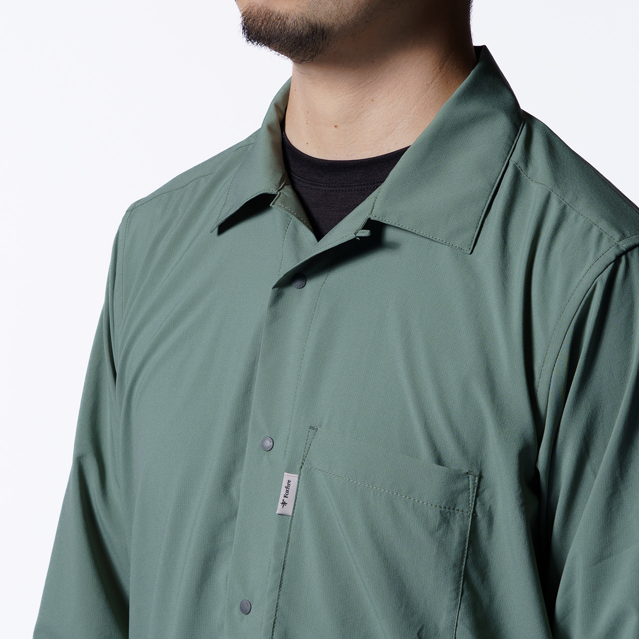 カジュアルに着こなせるゆとりのあるシルエットとオープンカラー&ドットボタン仕様で、幅広いシーンに対応します。