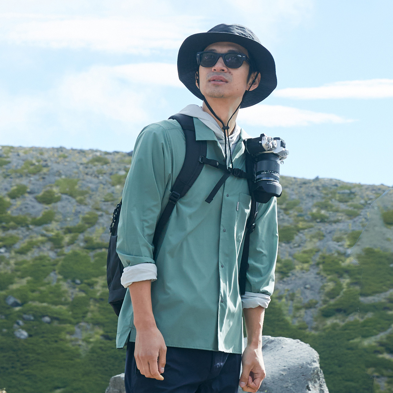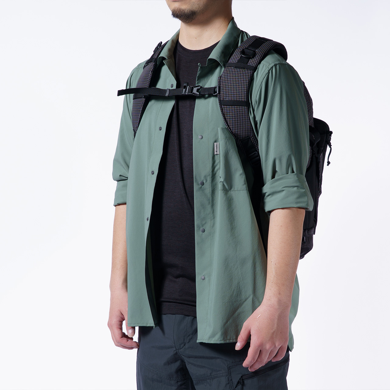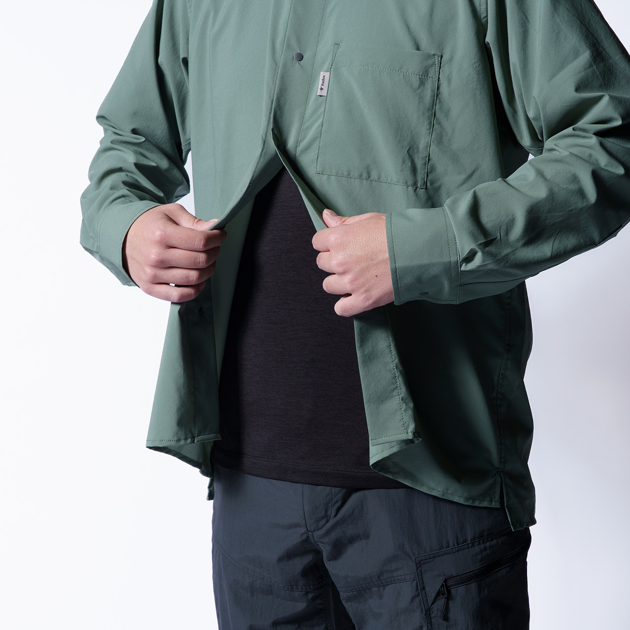 - 軽量で通気性、速乾性に優れたシャドウリップ生地を採用したシンプルなデザインのトレッキングシャツ。