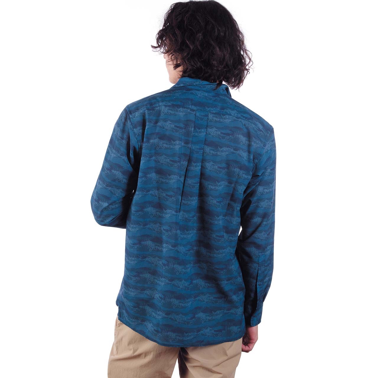 - 通気性に優れたポリエステル素材を使用した、やわらかく、サラッとした肌触りの総柄シャツ。