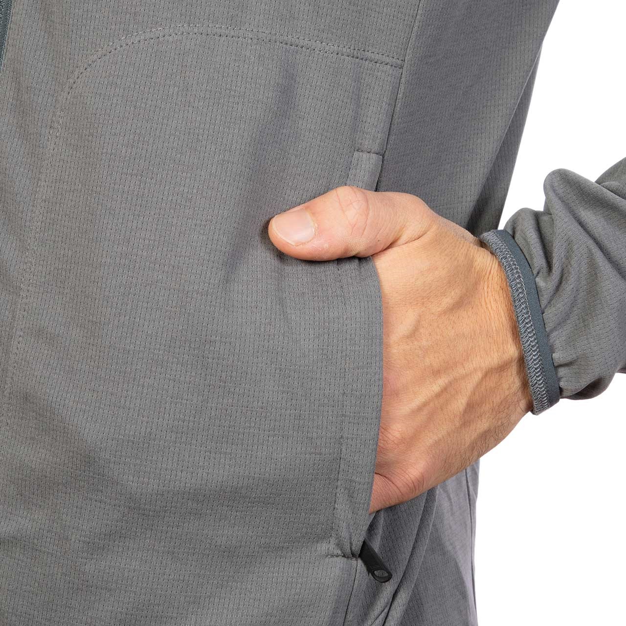 - アウトドアでのアクティブな使用環境に対応するフルジップフーディ。