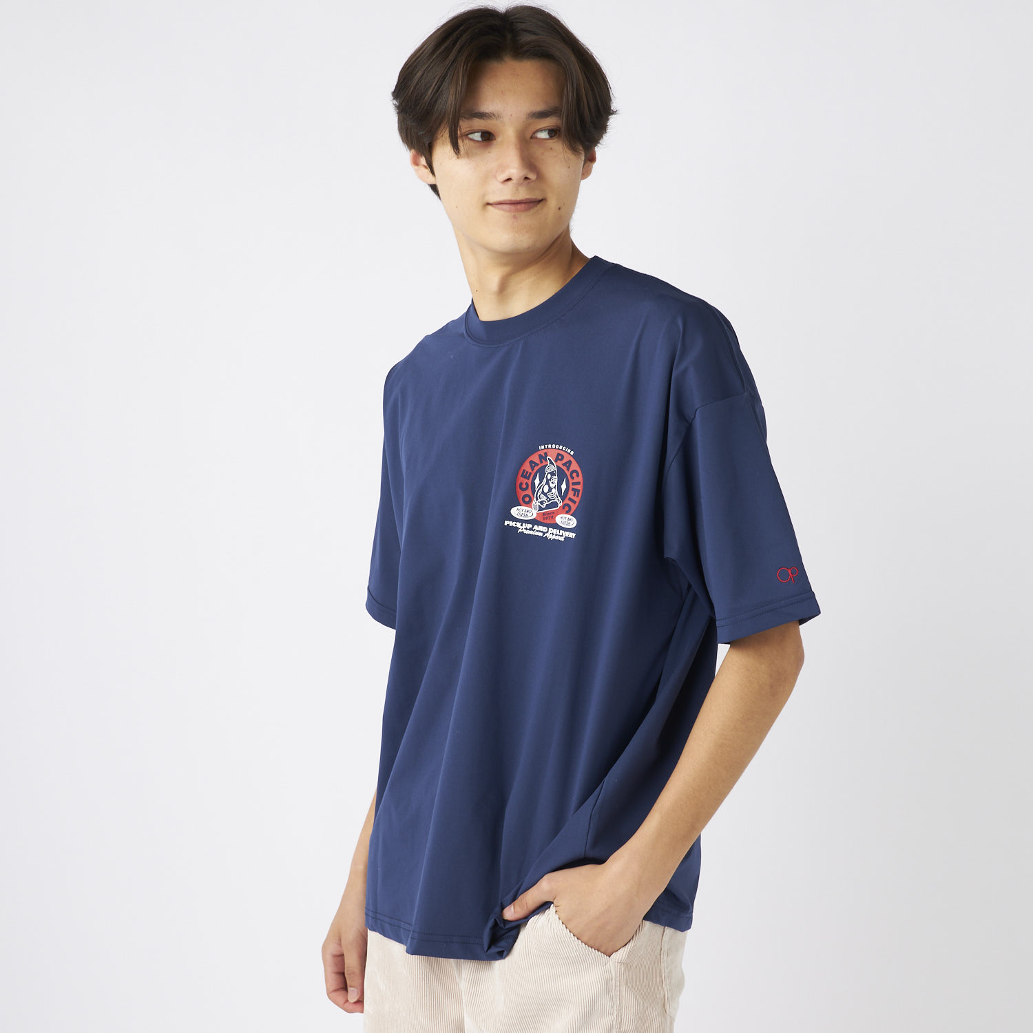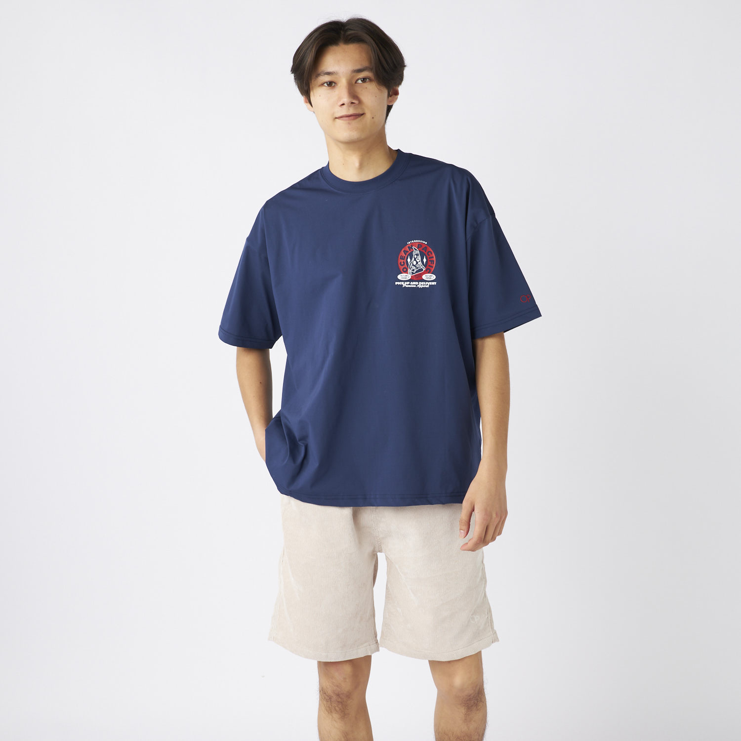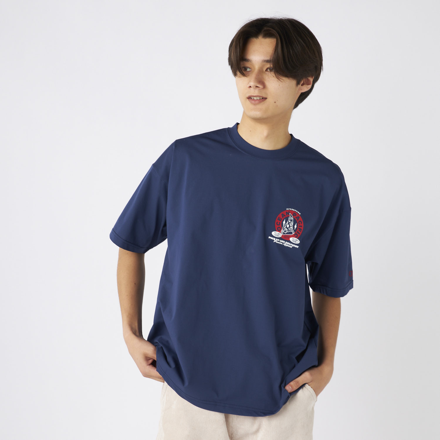 - PEARTEX素材のUVTシャツ。水陸両用・吸汗速乾・UPF50+対応で快適な着心地。カリフォルニアのお土産屋さんをイメージしたグラフィックを配置し、リゾート感とスタイルを楽しめる一枚で