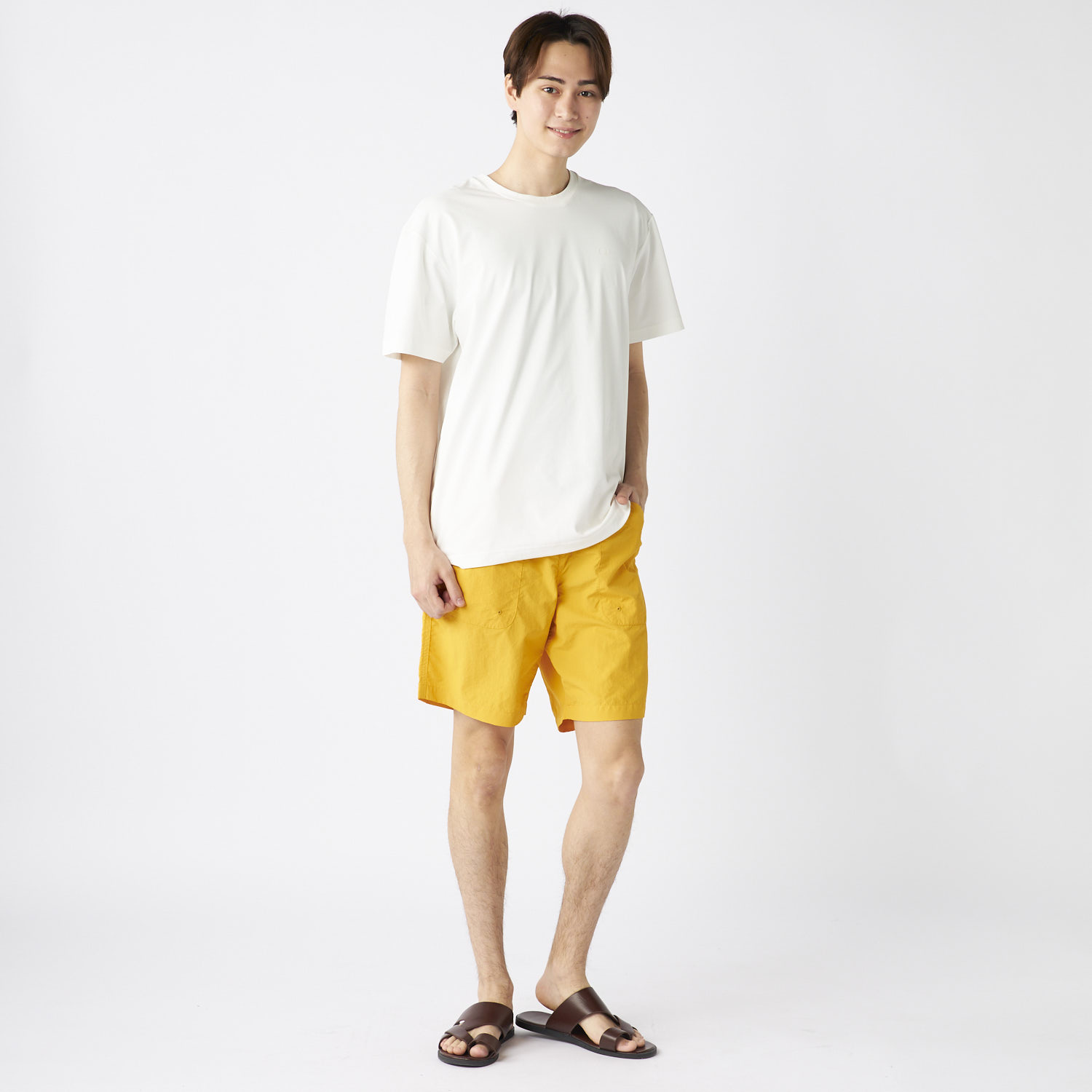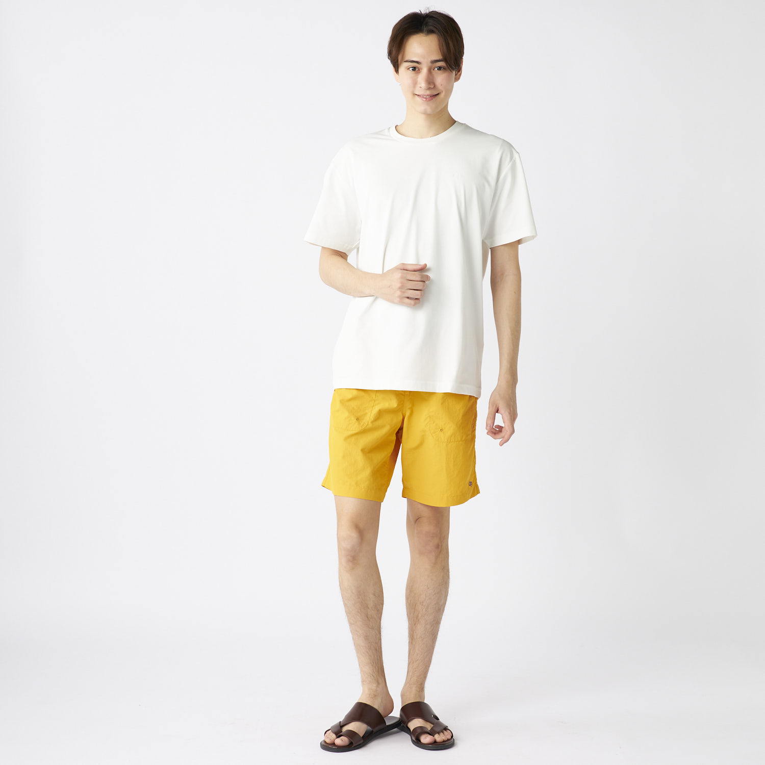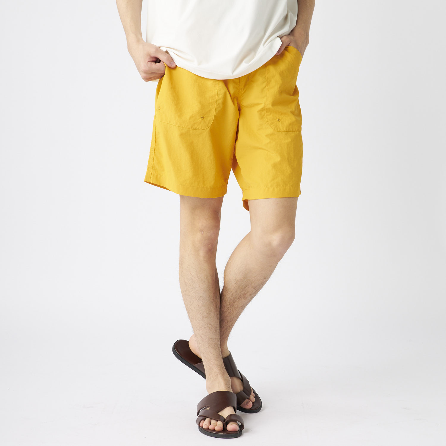 - ナイロン100%の軽量素材にワッシャー加工を施し、カジュアル感とリラックス感を両立! 水陸両用だから、水遊びやアウトドア後もそのまま着用OK。乾きやすくベタつきにくいのも嬉しいポイント。 家族でのお出かけにぴったりな、夏の頼れる万能素材! ■デザイン すっきりとした無地にシワ感がおしゃれなショートパンツ。 ウエストのゴム+ベルト仕様で着脱しやすく調整も楽ちん♪ 両サイド&バックにポケット付きで、手ぶら派のパパにも便利! デイリーでもレジャーでも使いやすいカラー展開です。 ■スタイリング シンプルなTシャツやタンクトップと合わせれば、ゆるっと爽やかなパパコーデに。 キャップやサンダルでレジャー感を思いっきりだしても◎ タウンユースならロゴT×サングラスでちょいワイルドにまとめてもおしゃれになっちゃいます!