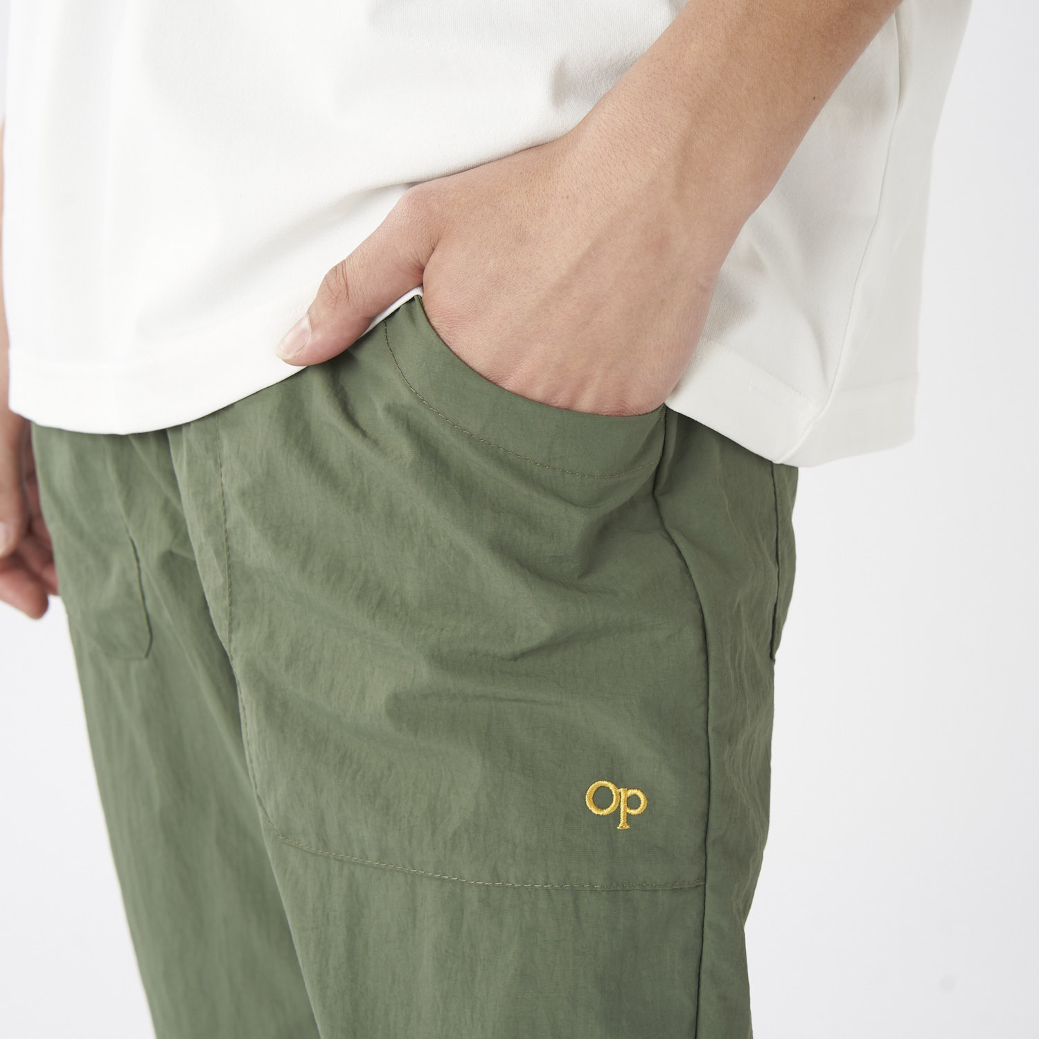 - 軽やかなナイロンワッシャー素材を使用した、カジュアルなクロップド丈パンツ。ウエストはヒモ仕様で、簡単にフィット感を調整可能◎ リラックス感のあるイージーな履き心地とさりげないOPロゴがアクセントになったパンツに!デイリーからアウトドアまで幅広く活躍する万能アイテムです。