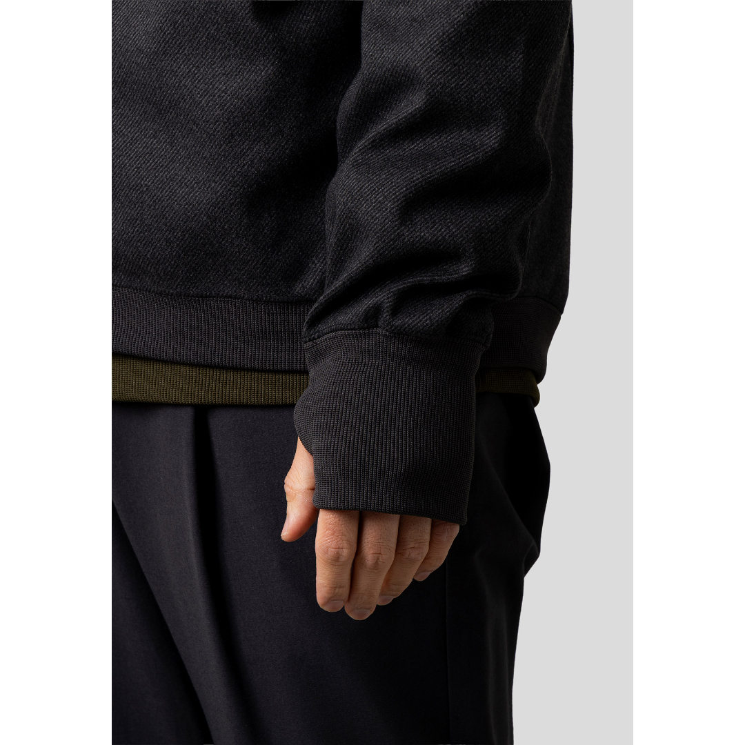 定番のプルオーバーパーカーのシルエットをベースにウールには無い軽さとストレッチがかなり強い素材なので着心地も非常に軽快です。