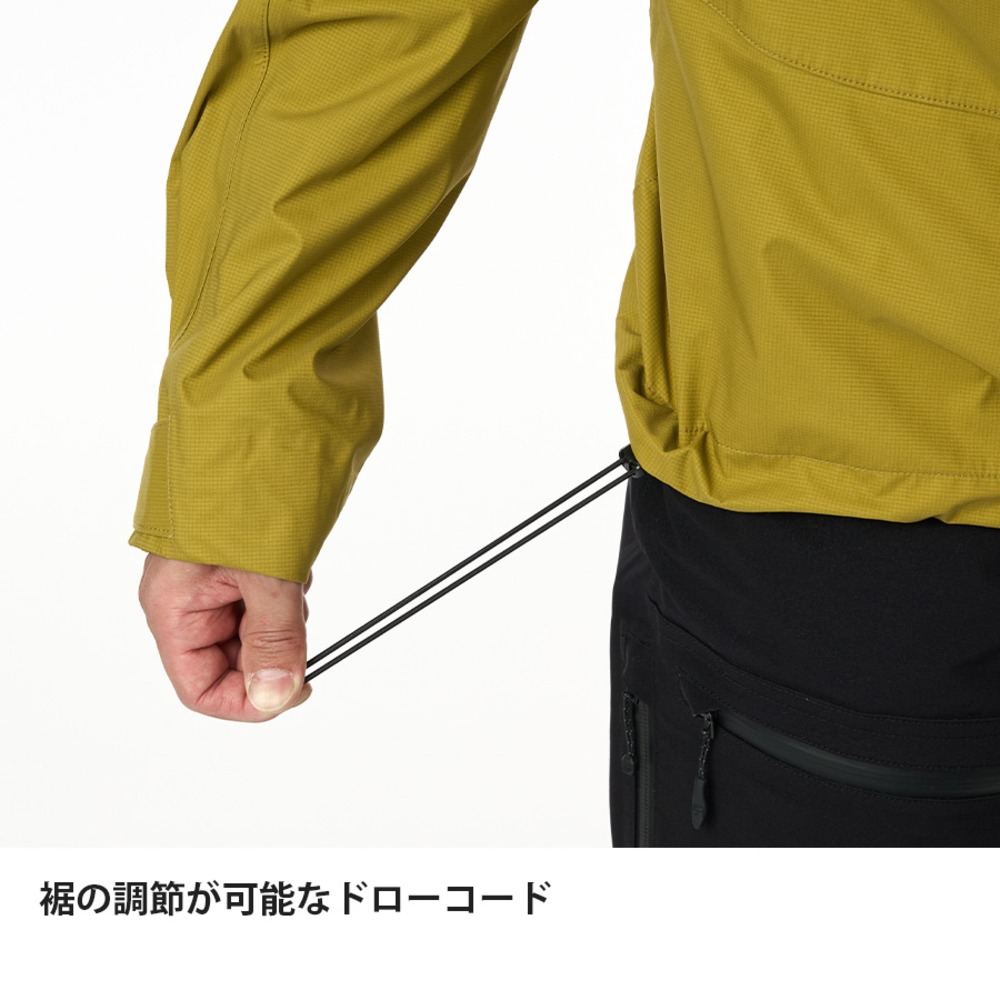 雪山に必要なギミックを各所に過不足なく配置しました。フードはヘルメットに対応可能、かつビーニーにもフィットさせられるアジャスタ機構を搭載。顔まわりを風雪から保護する高めの襟、寒冷地でも凍り付きにくい止水ビスロン®のフロントファスナーなど、少しステップアップした雪山にも対応可能なディテールです。