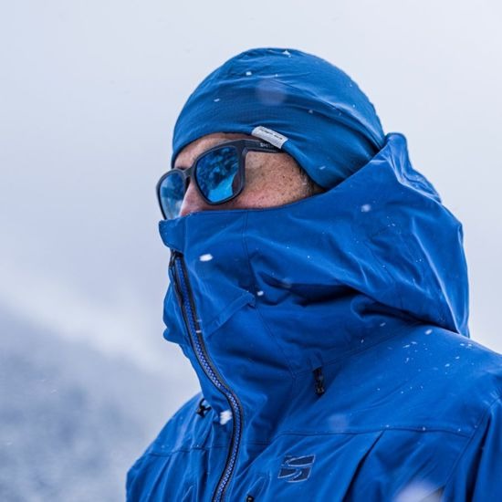 呼吸を容易にするブレスベンチレーター付きのフェイスガード、袖口からの雪の侵入を抑えるダブルカフなど、「遊び手」目線の細やかなギミックを配し、雪上でのあらゆるストレスを軽減。