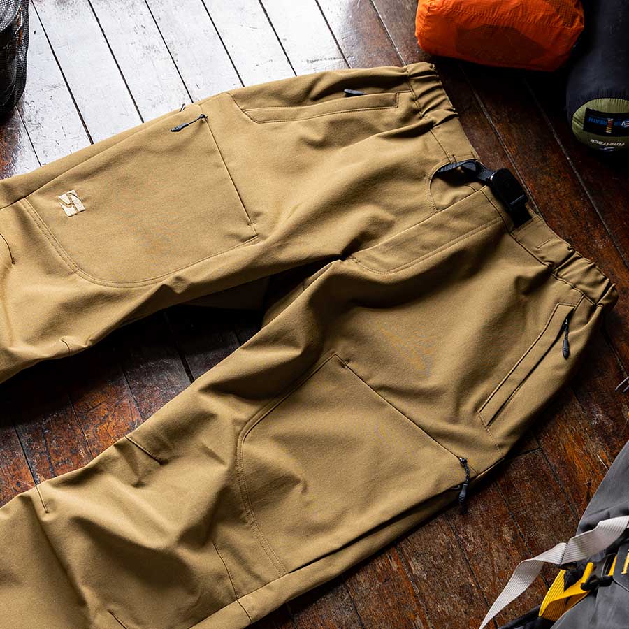 山岳パンツとしての機能とともに、シルエットの美しさにもこだわり、雰囲気のあるパンツに仕上げました。