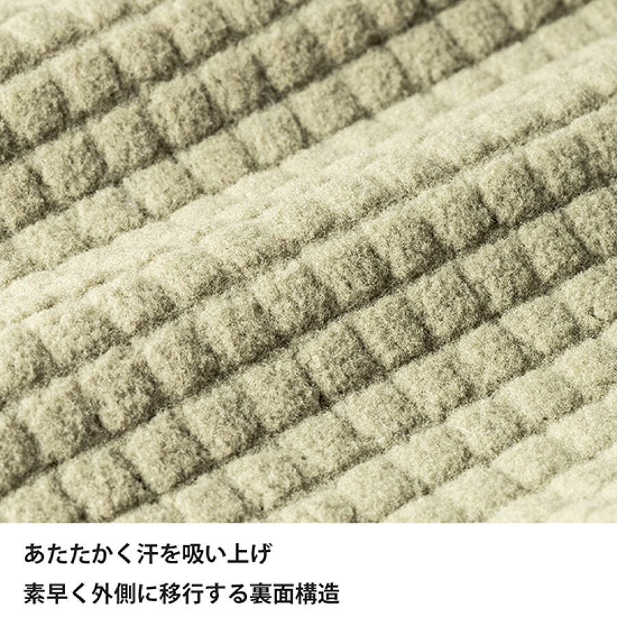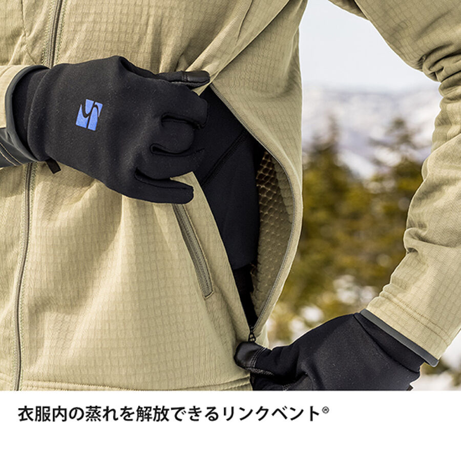 確かな保温力と汗処理性能を両立。行動中はかき続ける汗をしっかり吸い上げ、休憩時には汗を乾燥させて濡れによる冷えを軽減するスムーズな汗処理能力を、独自開発の生地構造により実現。